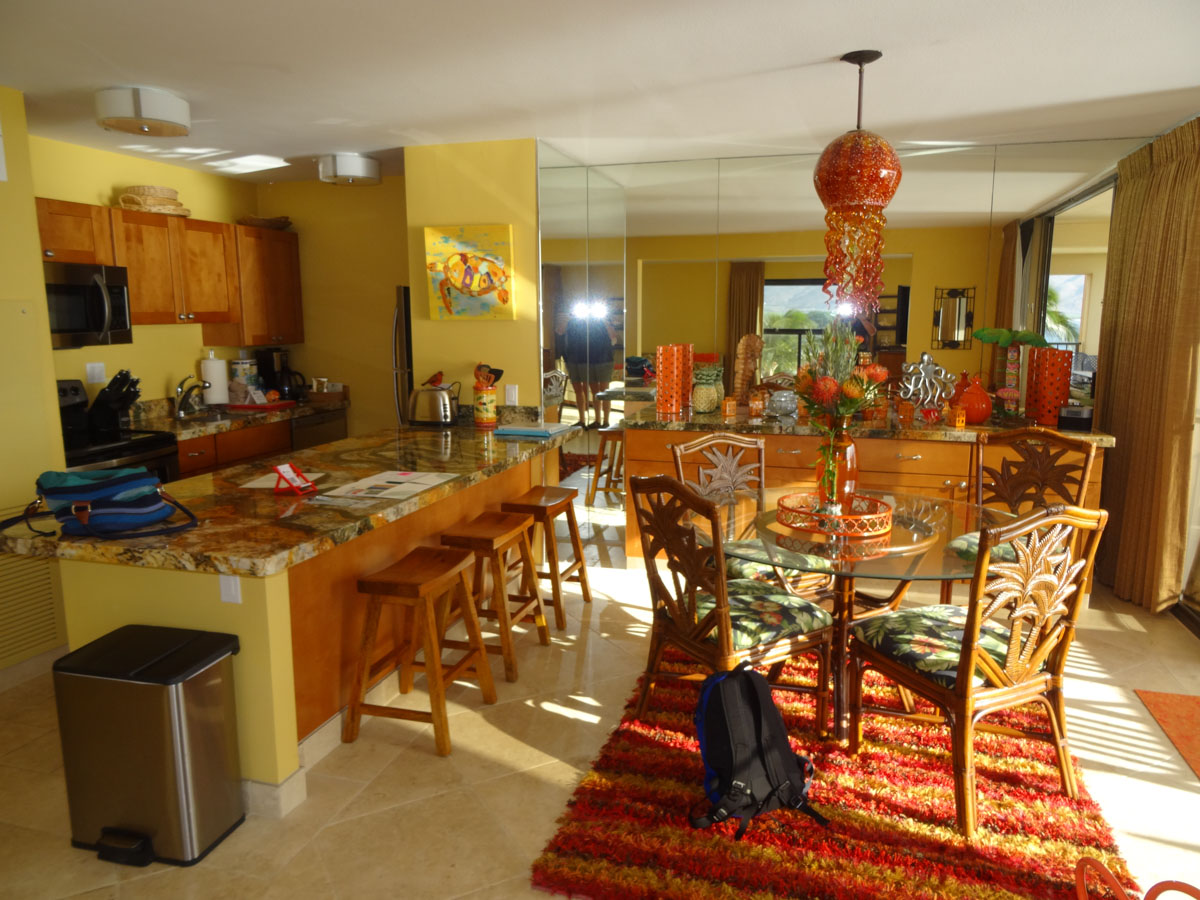 This week we are staying at the Sugar Beach Resort ($2750 USD, unit #535). Normally when we stay in Kihei, we stay at the Kealia Resort which is next door. Unfortunately they had no units available this time. The unit we are staying in is very spacious and has the same awesome view as the Kealia. We brought our stuff up and quickly got settled in.