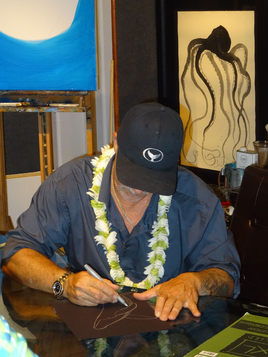 Wyland happened to be at his art gallery this evening so we stopped in. We watched him sketch a whale breaching in about five minutes. Karen was even lucky enough to her picture taken with him.