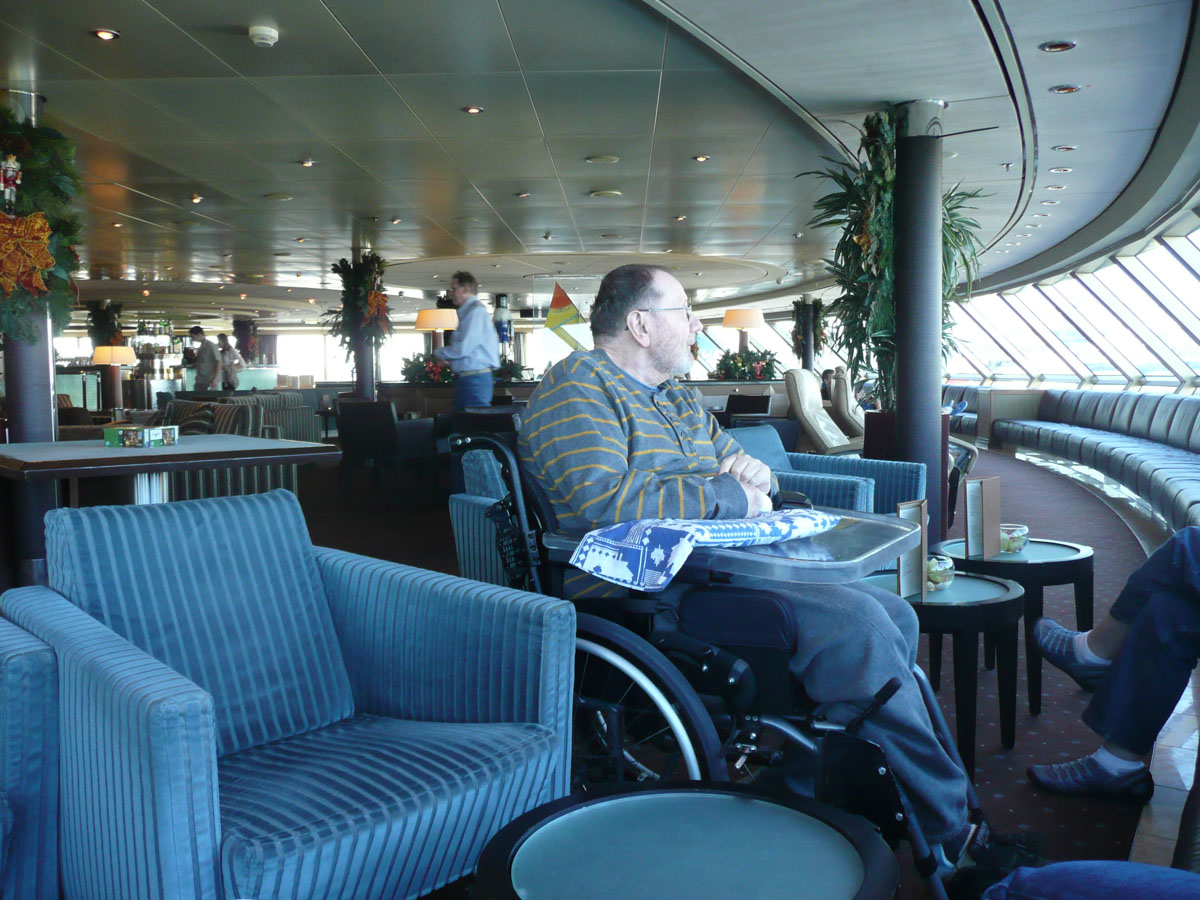 Karen dropped off Nana, Papa, me and the luggage. She then headed to the Fort Lauderdale airport to drop off the rental car. I would say that it took the three of us approximately half an hour to be sitting in our staterooms. This is probably one of the few times that the wheelchair is convenient. Karen arrived about an hour later and we all headed up to the Lido Restaurant to enjoy our first buffet of the cruise