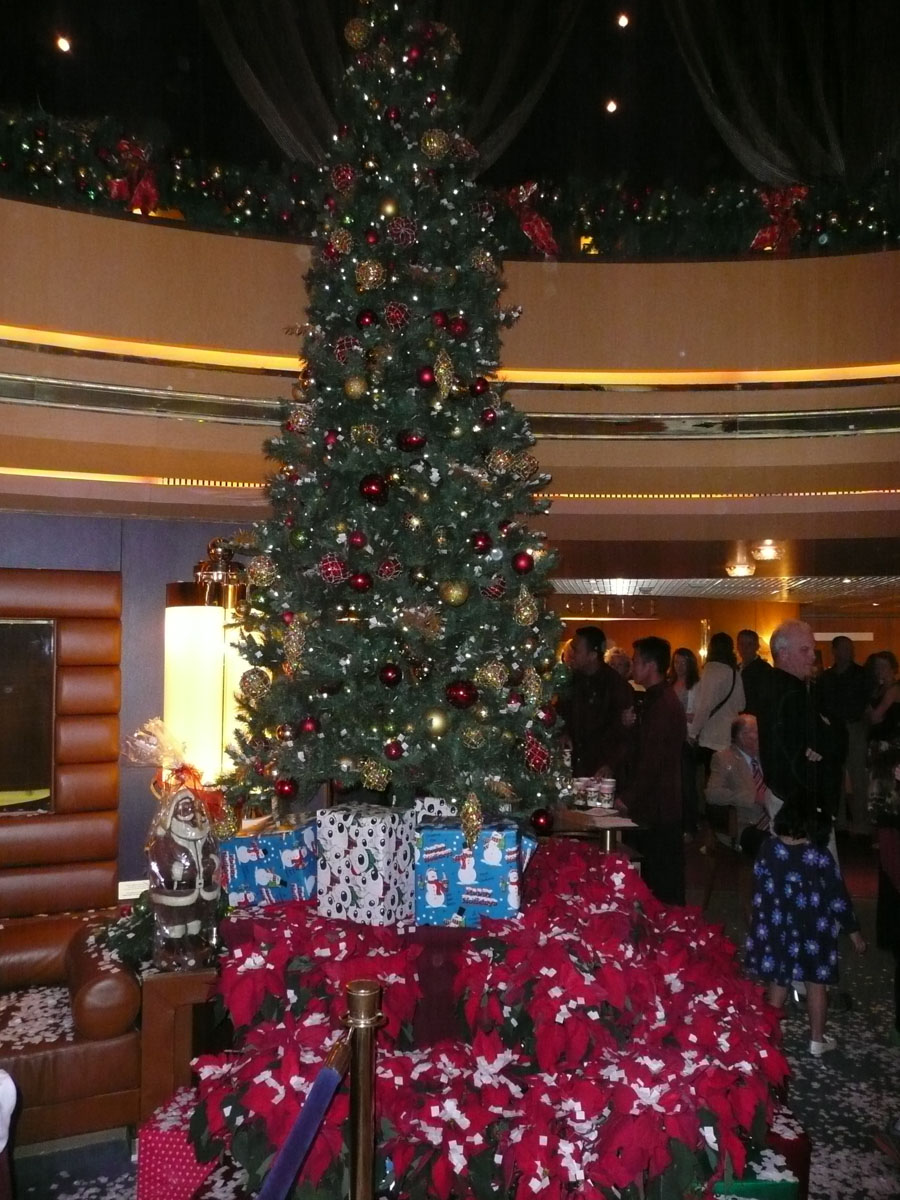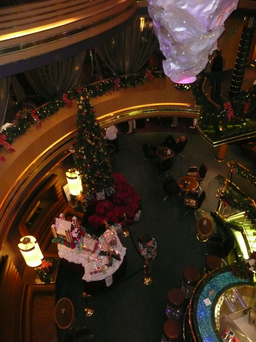 We spent some time checking out the ship and it’s beautiful Christmas decorations before heading back to our staterooms to unpack. I even enjoyed a complimentary neck and shoulder massage. I did not realize how stressed out I am. I might need to have another massage during the cruise.