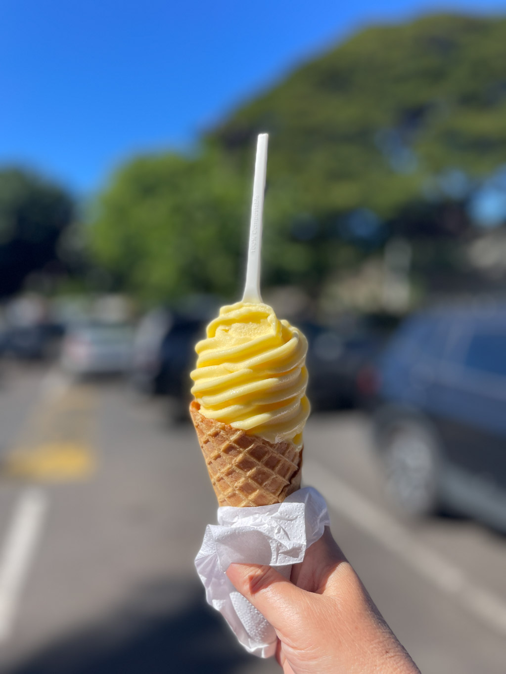 On the way back to the condo, Karen says let’s get lunch from L& L Hawaiian Barbecue which is in the same mall as the Times Supermarket. As we were parking the car, we saw a Dole Whip sign at Pizza Paradiso. After we got our fried noodles, we walked across the parking lot and got ourselves a Dole Whip.