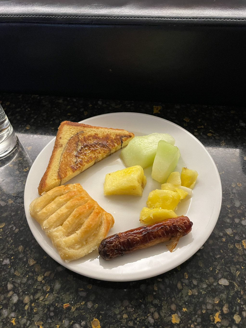 I can’t remember what time we landed in Vancouver but I seem to recall it was after 7:30am. After we got through Canadian Customs, we headed over to Gate C50. Our 9:10am flight to Toronto was not boarding until 8:25am, so Karen and I went to the Air Canada Maple Leaf Lounge which was nearby. The lounge is on the smaller side but there was a good selection of breakfast items.