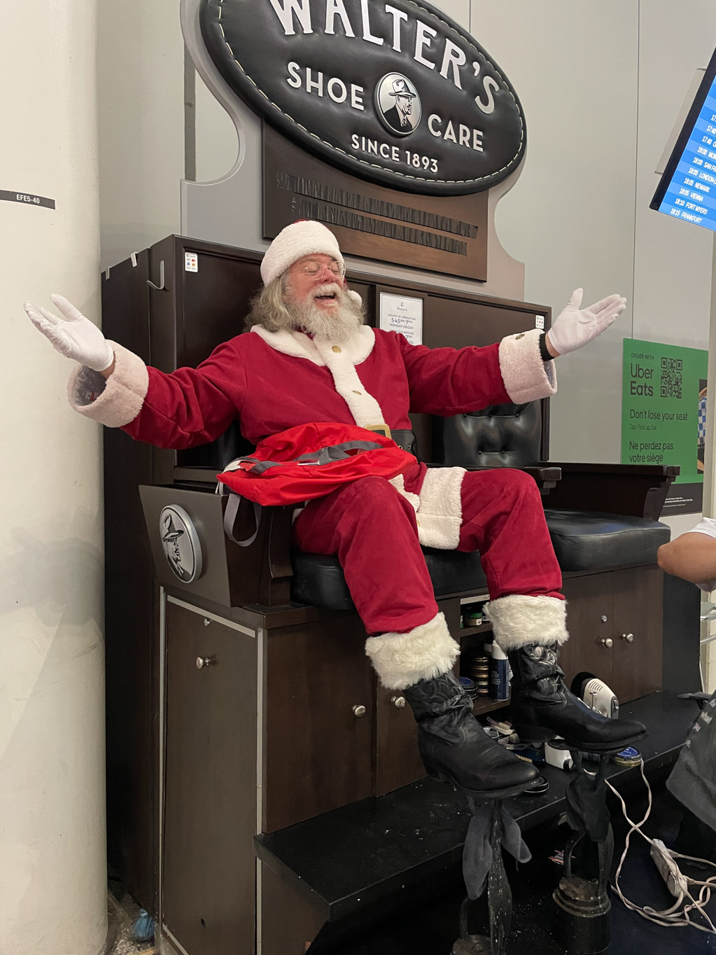 We landed in Toronto around 4:30pm to a much different temperature than when we left Hawaii. It always seems that our gate is the furthest from the baggage claim. Along the way, I ran into Santa who was getting his boots shined. After we collected our suitcases, Karen texted her brother Ross who came and picked us up. We had a short visit with him and his wife Susie before heading home. We dropped Paula at home in Guelph and then we arrived at my house around 7:00pm. We were greeted by Nana and Maui.