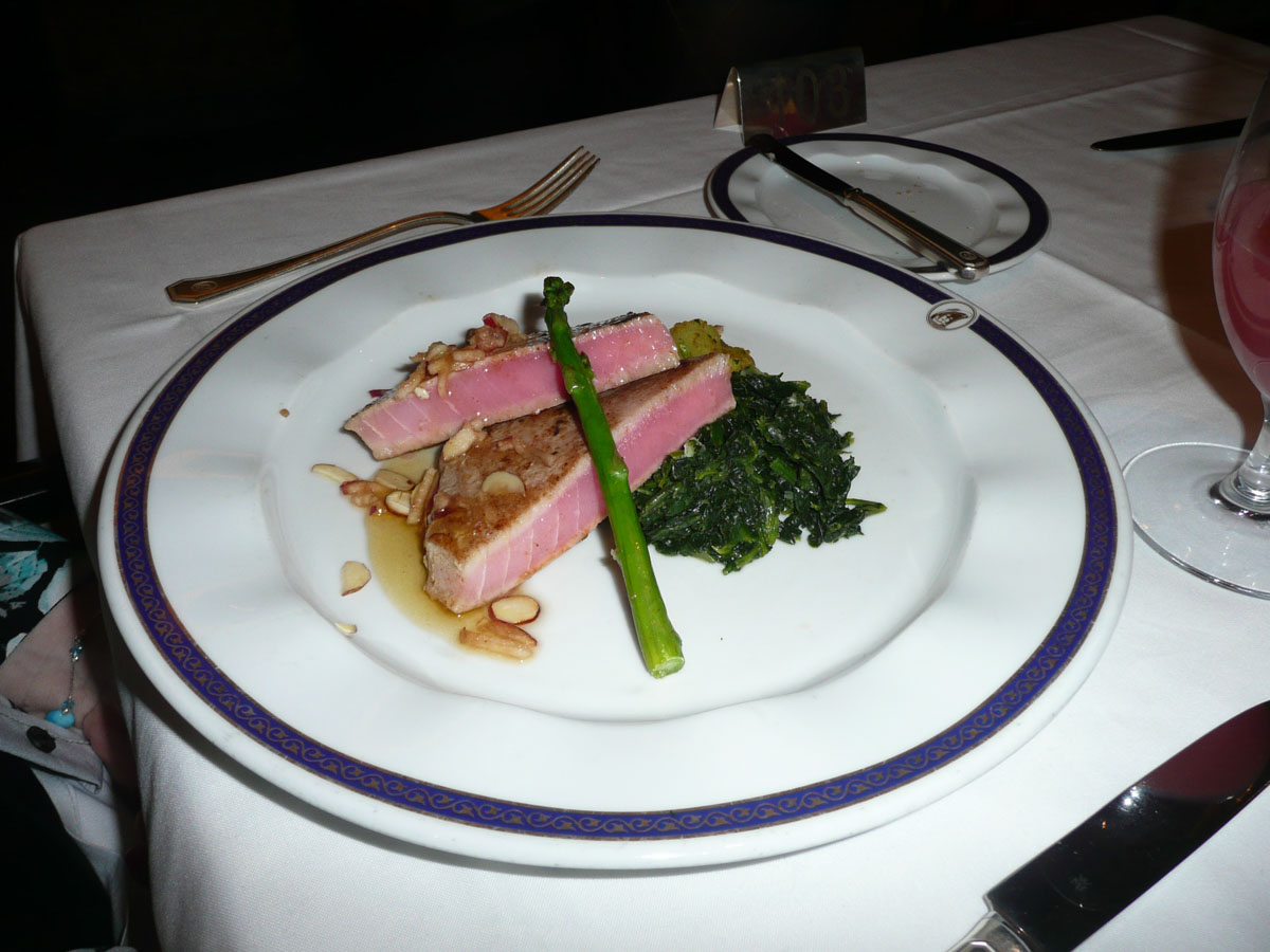 We had dinner in the main dining room again and tonight’s selections included Chilled Cranberry Soup, Maple Glazed Tuna with Apple Potato Salad and Alaskan King Crab Legs. After dinner, we went to The Mainstage to enjoy the juggling and comedy of Adam Kario. We ended the night by checking out the singers at the Karaoke Power Hour!