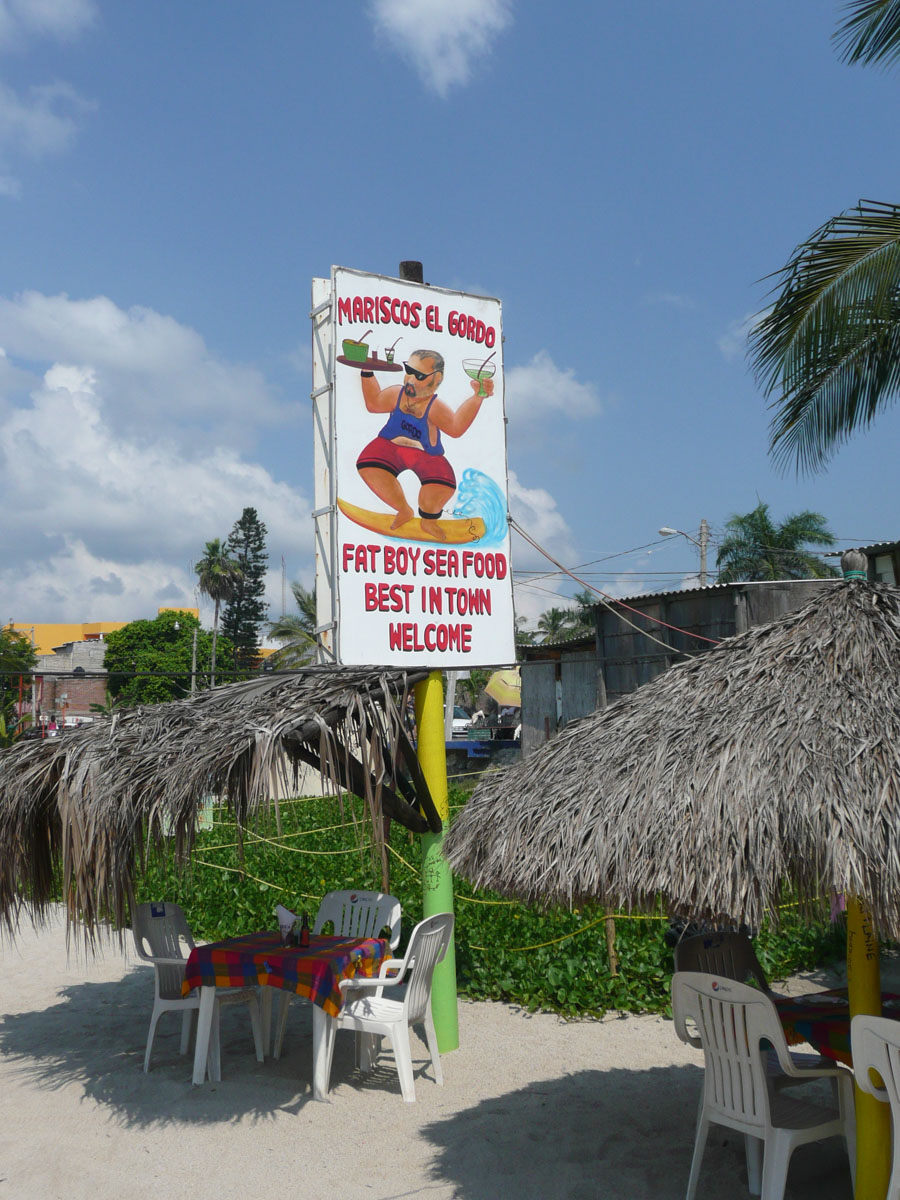 Bucerias is located approximately a half hour north of Puerto Vallarta. It’s a beachside town with lots of restaurants, art galleries and shopping. Since it was just after 12:oopm, we decided to have lunch. We headed down to the beach and stopped at Fat Boy’s. We enjoyed a lovely lunch on the beach, with our toes in the sand, while being serenaded by a Mexican gentleman singing Rod Stewart, Neil Young, Pink Floyd, etc.