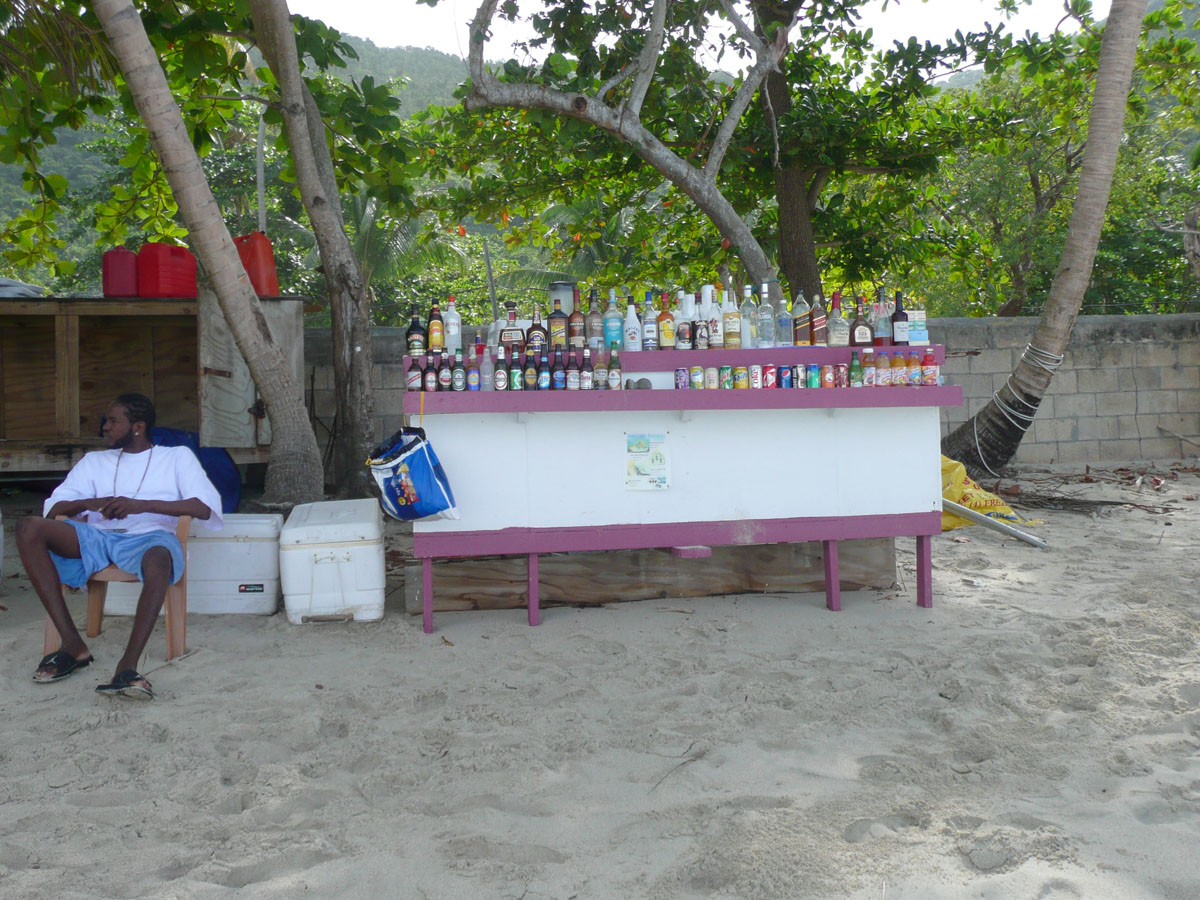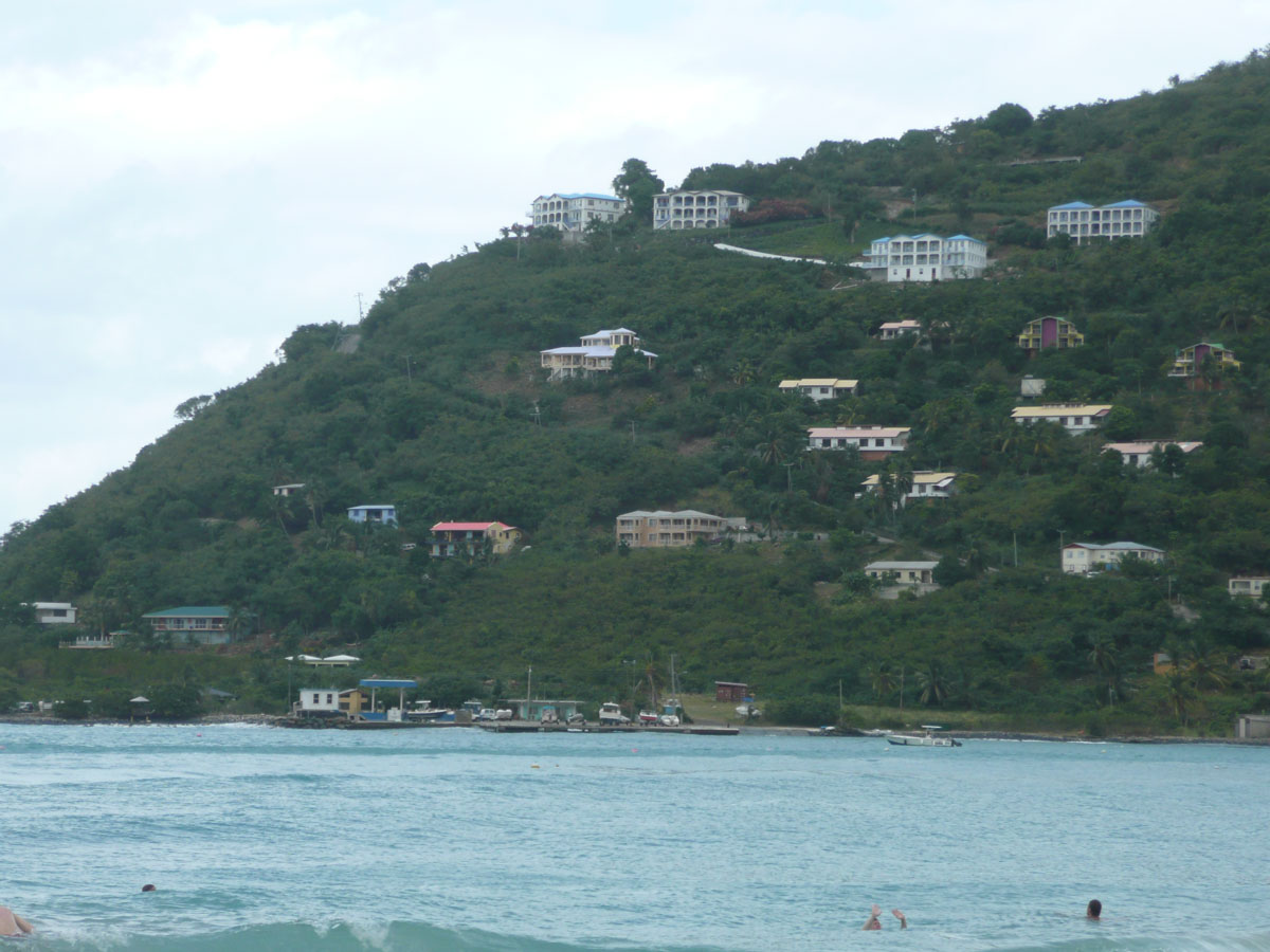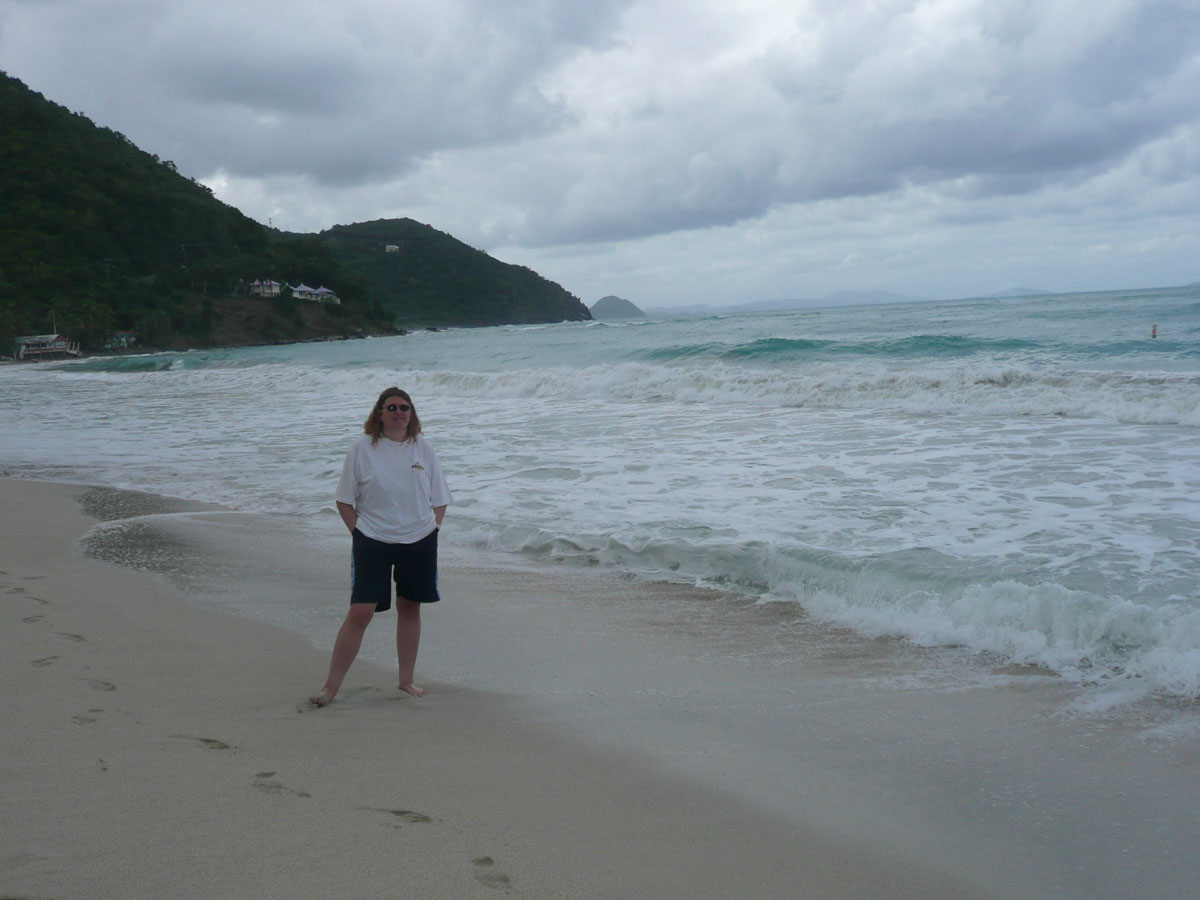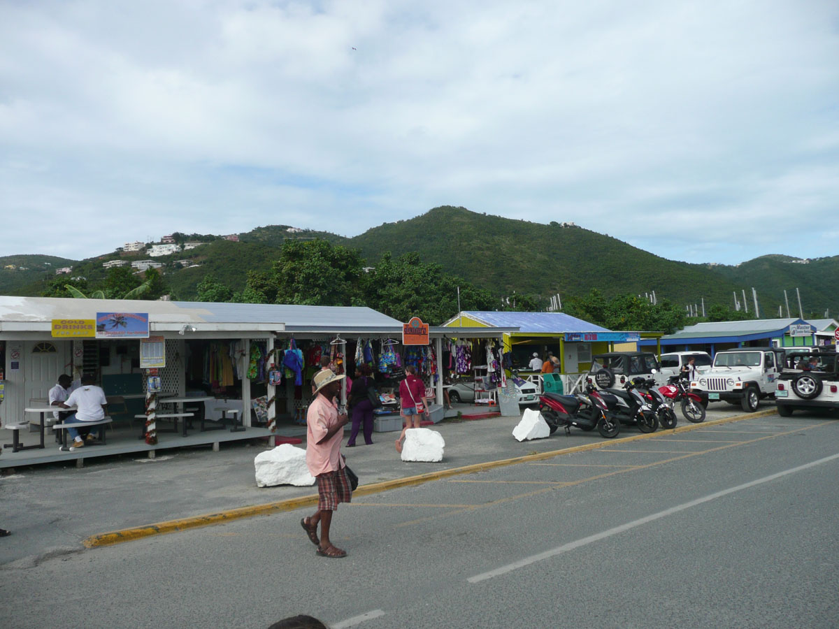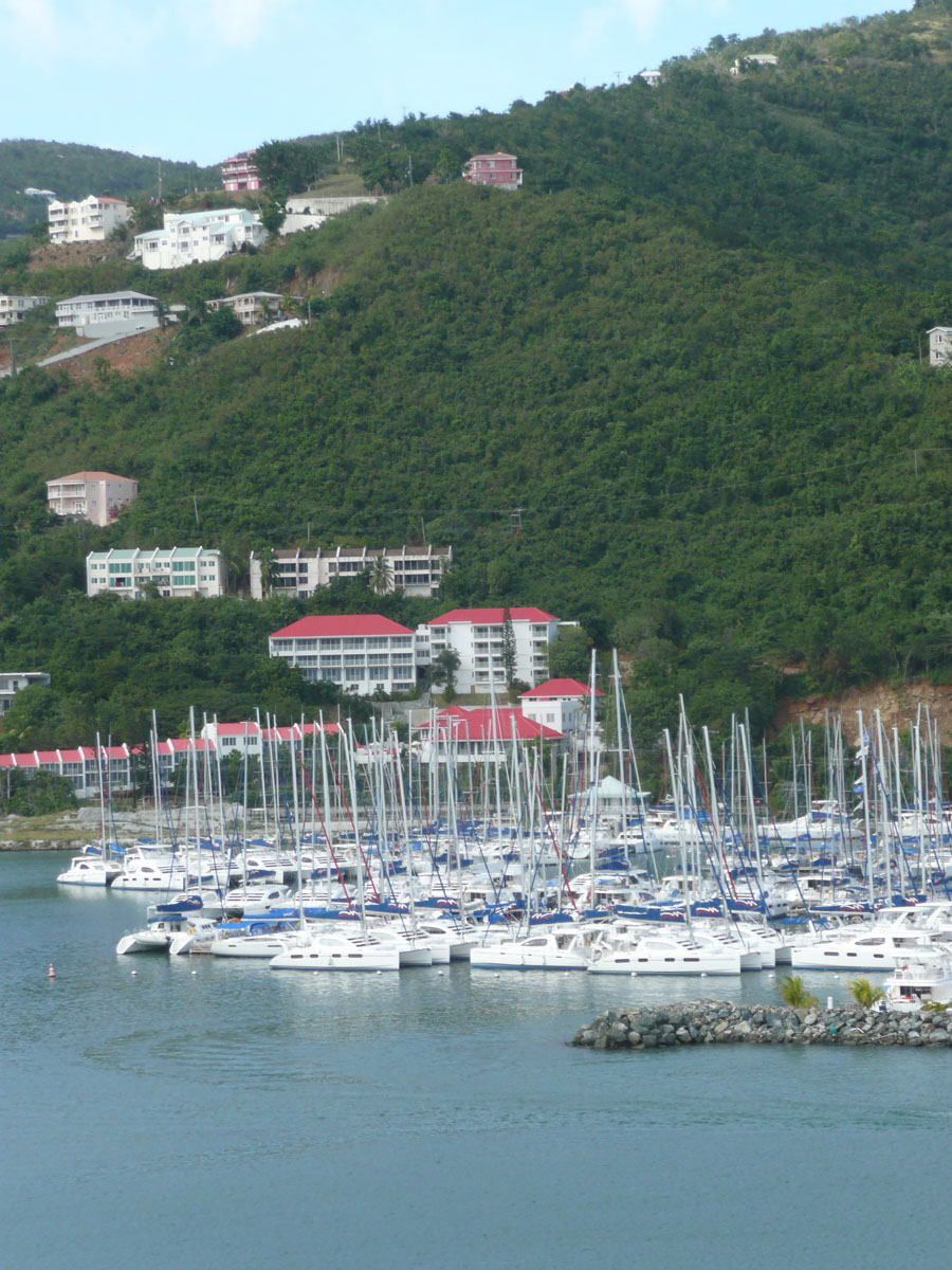 Today we were in Tortola in the British Virgin Islands. It was an early start today. The ship docked in Road Town at 7:00am and we were off by 8:30am. We went over to the cruise terminal and like in St. Thomas, it wasn’t a problem getting a taxi. We decided that we would hit a beach before doing any shopping today. We did some research on the internet and everyone kept saying how beatiful the beach is at Cane Garden Bay. The taxi ride there was as wild as any ride at Wonderland. We drove winding roads at break-neck speed up and over the mountains, and down to the bay.