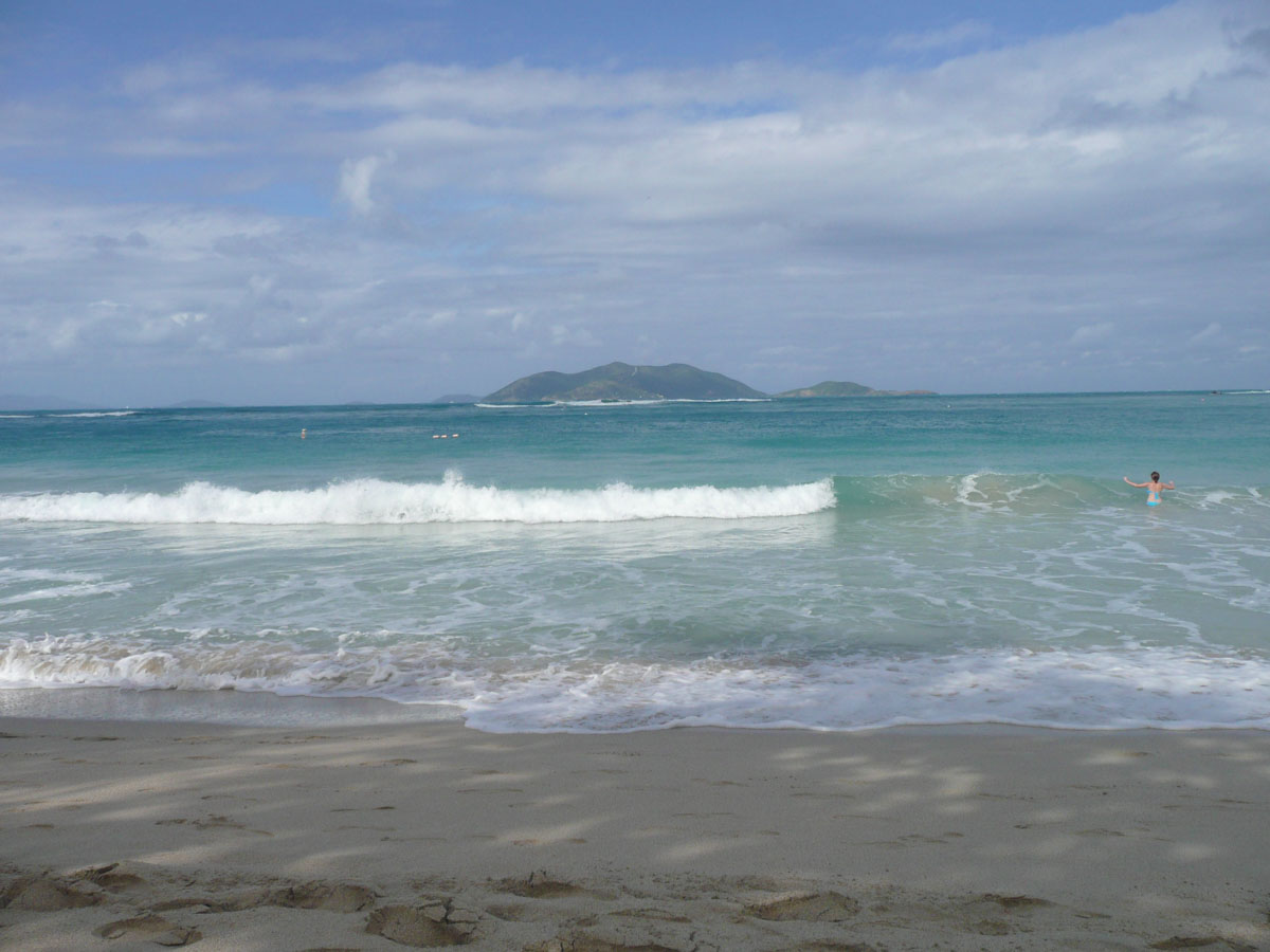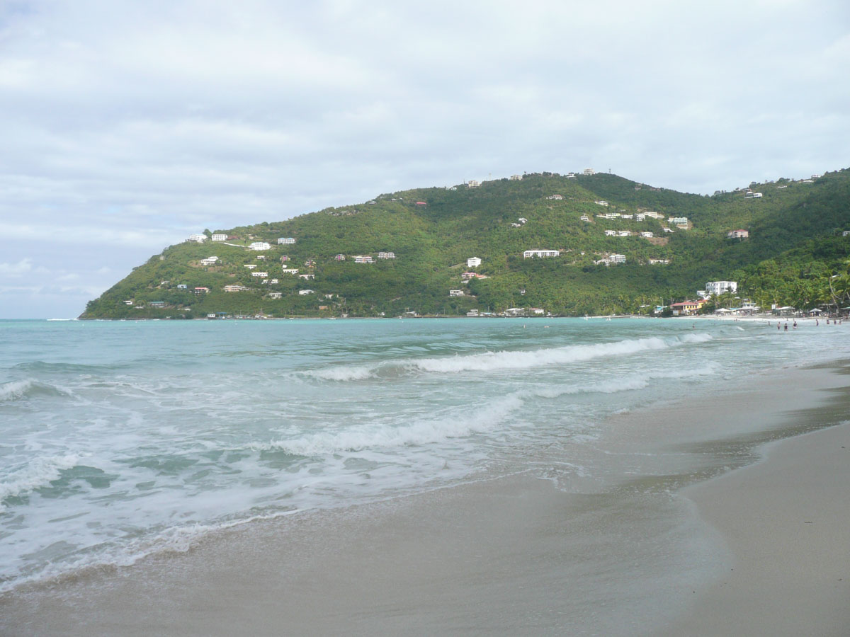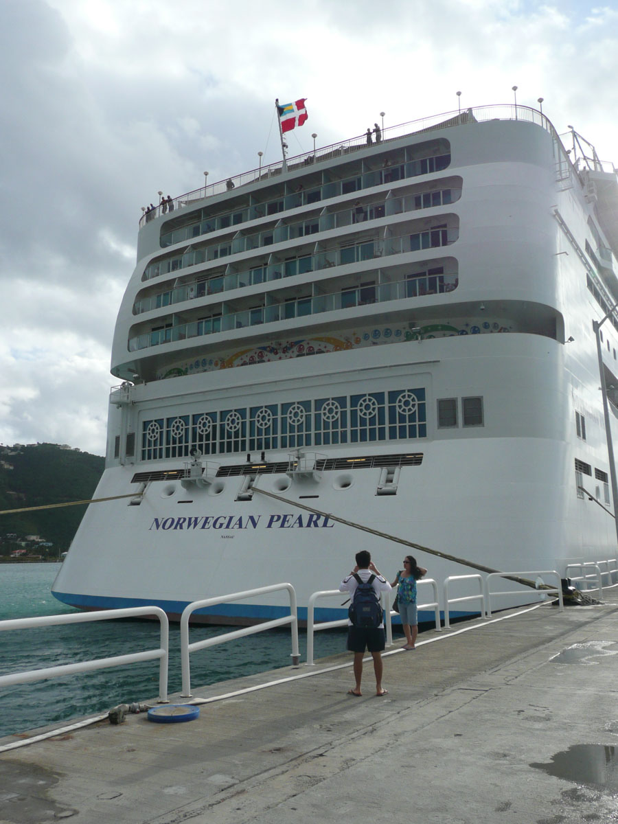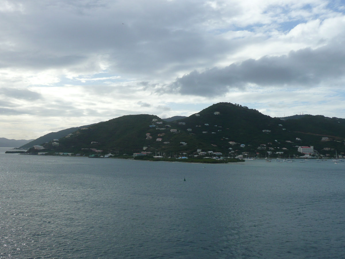 Today we were in Tortola in the British Virgin Islands. It was an early start today. The ship docked in Road Town at 7:00am and we were off by 8:30am. We went over to the cruise terminal and like in St. Thomas, it wasn’t a problem getting a taxi. We decided that we would hit a beach before doing any shopping today. We did some research on the internet and everyone kept saying how beatiful the beach is at Cane Garden Bay. The taxi ride there was as wild as any ride at Wonderland. We drove winding roads at break-neck speed up and over the mountains, and down to the bay.