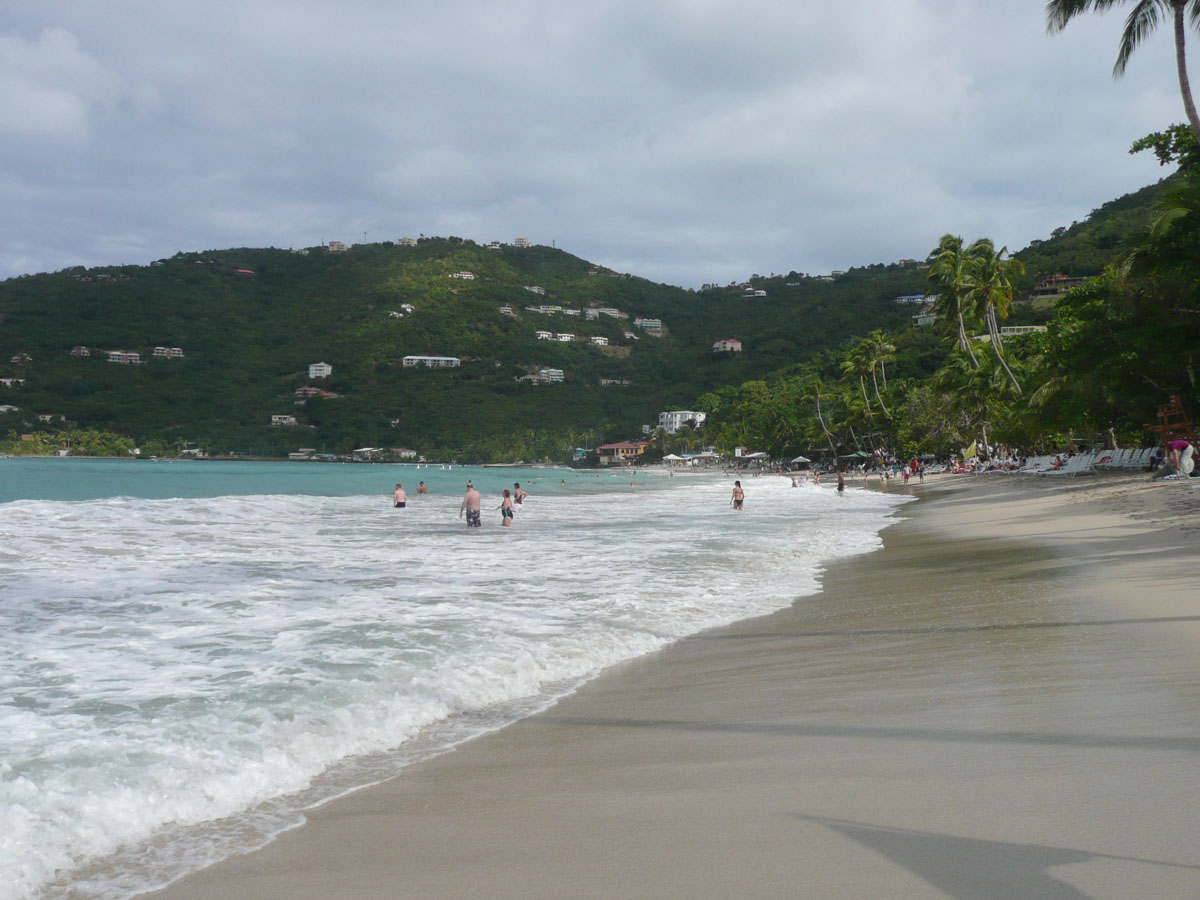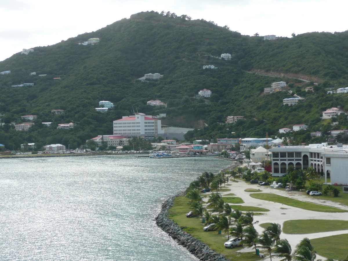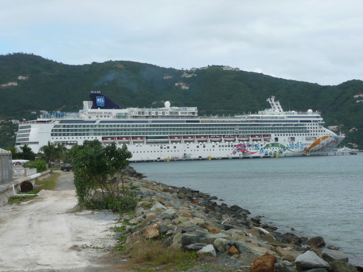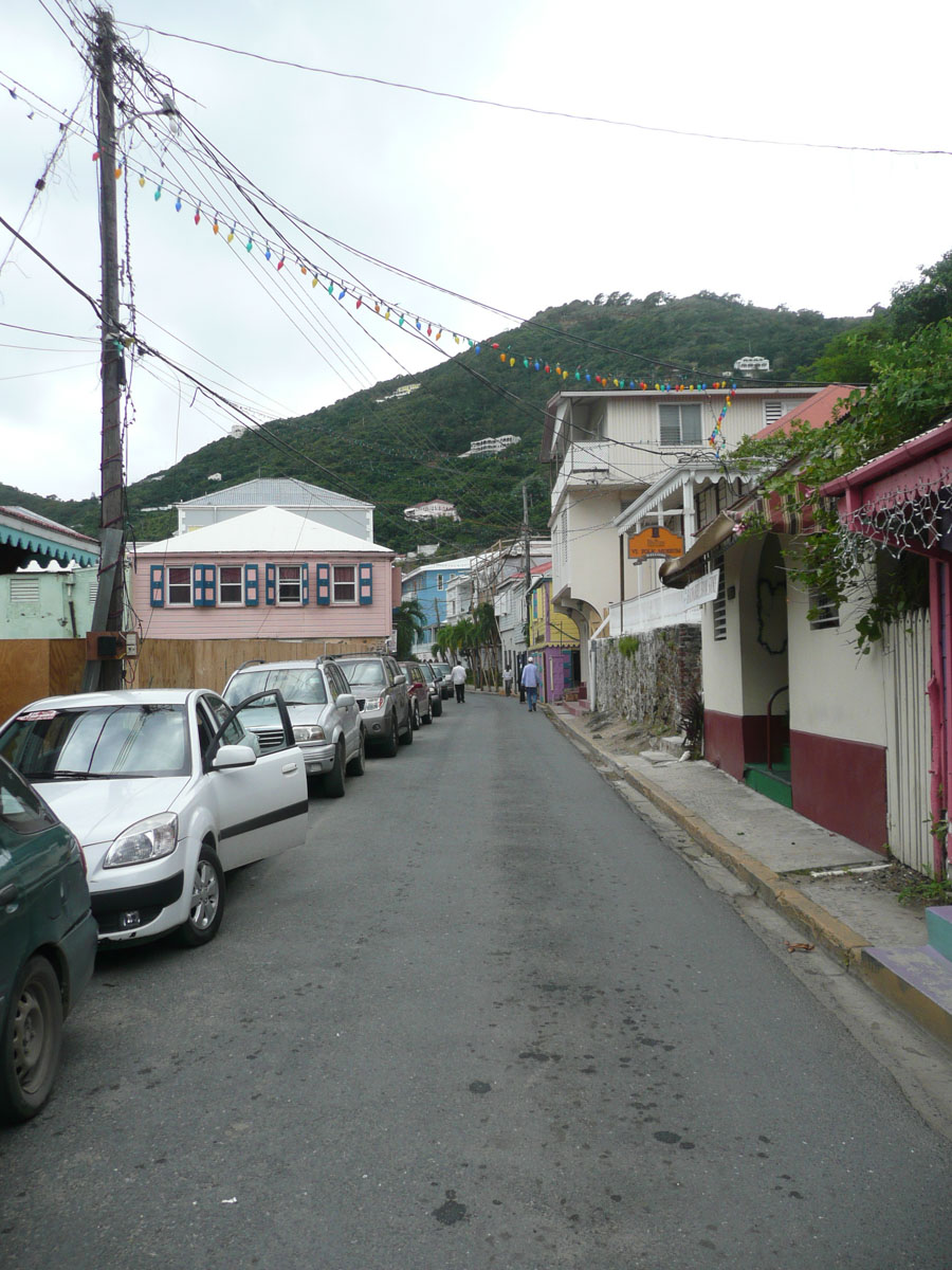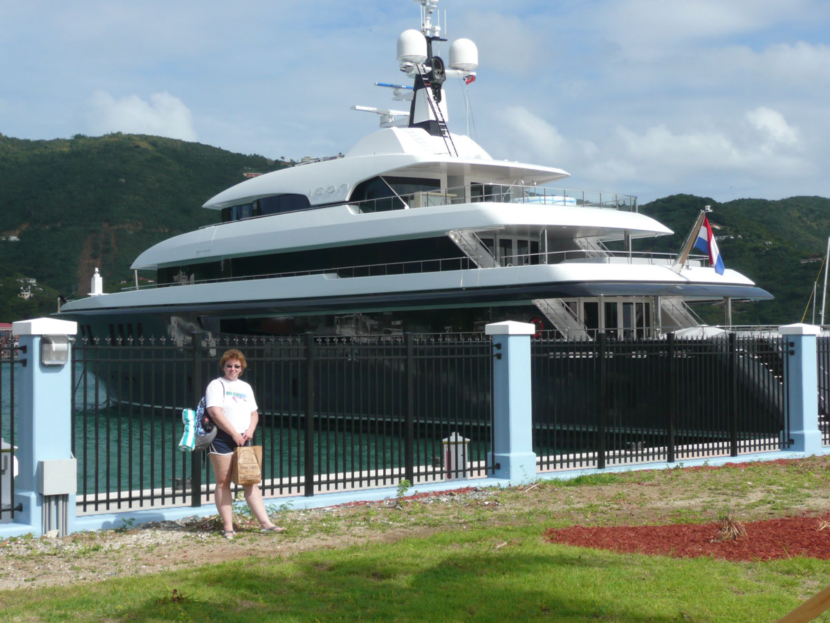 Today we were in Tortola in the British Virgin Islands. It was an early start today. The ship docked in Road Town at 7:00am and we were off by 8:30am. We went over to the cruise terminal and like in St. Thomas, it wasn’t a problem getting a taxi. We decided that we would hit a beach before doing any shopping today. We did some research on the internet and everyone kept saying how beatiful the beach is at Cane Garden Bay. The taxi ride there was as wild as any ride at Wonderland. We drove winding roads at break-neck speed up and over the mountains, and down to the bay.
