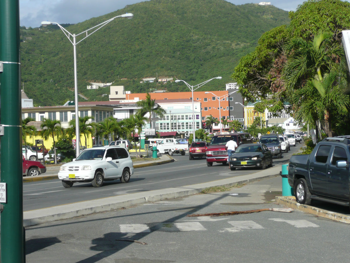 We got to the beach and it was as beautiful as people said. Turquoise water, palm trees, and surrounded by hills, with many colourful homes perched in the hills. Lots of bars selling drinks on the beach. We found our spot and rented a couple of loungers. It was very windy today which made for huge waves. They actually came right up to the lounge chairs, and swept away anything lying on the sand. Between the waves and the strong undertow, we thought it would be smarter if we didn’t go into the water. We saw many people get knocked down on their butts, so we stayed close to shore. We left Cane Garden Bay around noon and grabbed a taxi back to downtown Road Town. On the way back, we could see St Thomas, which is only about 11 miles away.