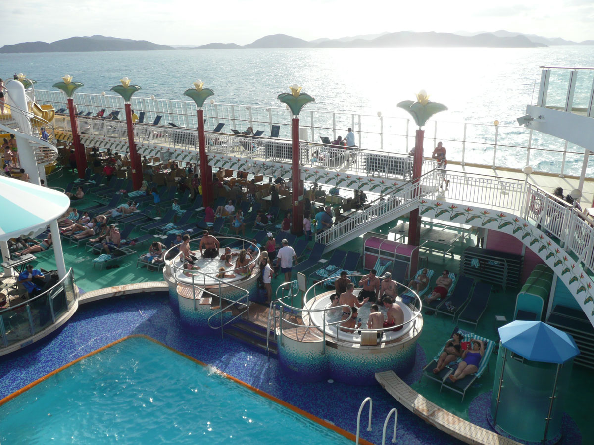 After departing Tortola at 2:30, we still had a good part of the day left so we decided we should work on our tans on the sundeck. Once we got there, it was just too windy to sit outside. Instead we went to the Spinnaker Lounge and grabbed the big bed for an afternoon nap.