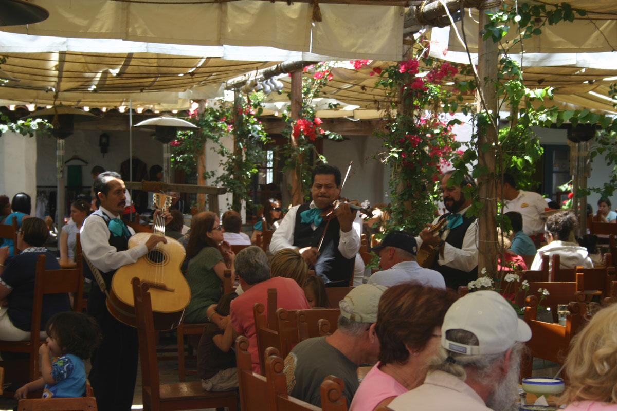 We started our Mexican adventure in Old Town, which maintains a lot of San Diego’s history, heritage and culture.  We walked around the streets in the beautiful sunshine and checked out the many shops in Plaza del Pasado and Bazaar del Mundo.  After all that walking, we were getting hungry.  We had lunch at Casa de Reyes, and enjoyed the Mariachi band that performed in the outdoor restaurant.  (Who knew that a Mariachi band could play “Beer Barrel Polka” and  the “Chicken Dance”?)  Karen was getting into the Mexican spirit and even had a strawberry margarita with lunch.