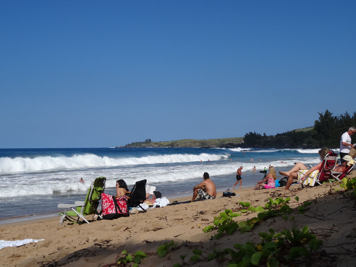 We wanted to hit a beach today so we packed up the car and headed to D.T. Fleming Beach Park.  We quickly found our spot for the afternoon.  The waves were huge today so we decided not to go into the water for fear of being sucked in.   We did some reading, snacking and napping all under the beautiful sunny skies.  When we got back to the condo, we took a quick dip in the heated pool and then spent the rest of the afternoon relaxing on the lanai.