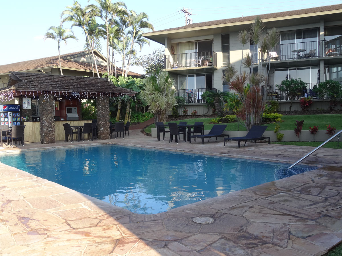 It was somewhat of a late night last night, so we decided that we would sleep in today.  It was around 8:45am and I was just relaxing in bed when all of a sudden the phone rang.  It was Allison letting us know that Darren had a promo today at the Ka’anapali Beach Club which is very near to us.  The problem was that it was in half an hour.  We quicky got ready and were able to meet Darren.  This promo was different than the others I have been to in the fact that it was only one song.  Since it was quick, we went back to his house so that Karen could see Allison and the girls.  On our way back to the condo, we picked up a late breakfast of pancakes from Slappy Cakes.