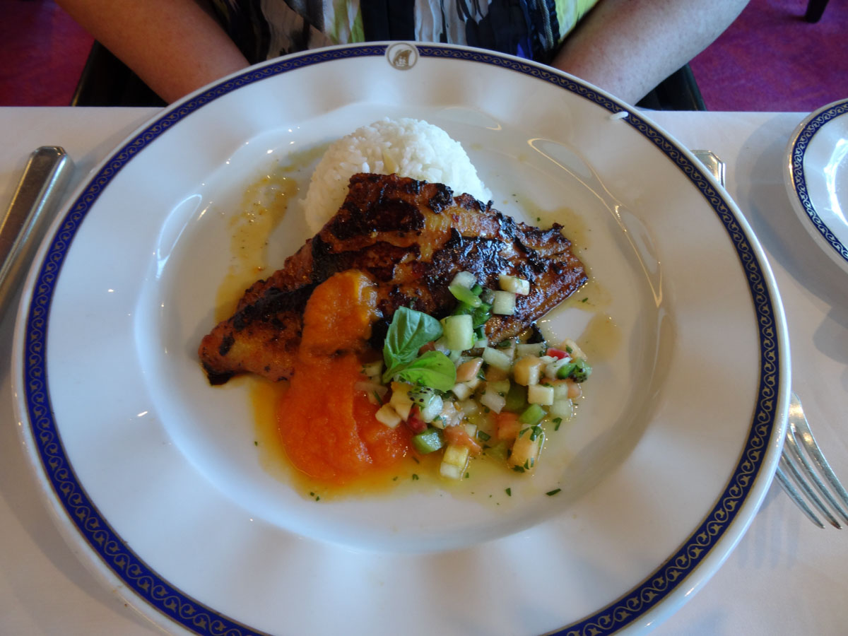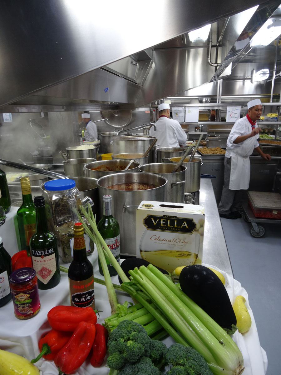 The day started with breakfast in bed.  I wish Maui knew how to make breakfast at home.  Followed by opening birthday cards and a fabulous gift.  We then did the “behind the scenes kitchen tour”, and hit the sidewalk sale at the Lido Pool. Lunch was in the Manhattan Dining Room (beef and chicken satay, chilled peach soup, chili crusted catfish, and spicy spaghetti, topped off with lime sherbet for dessert … Yum!).