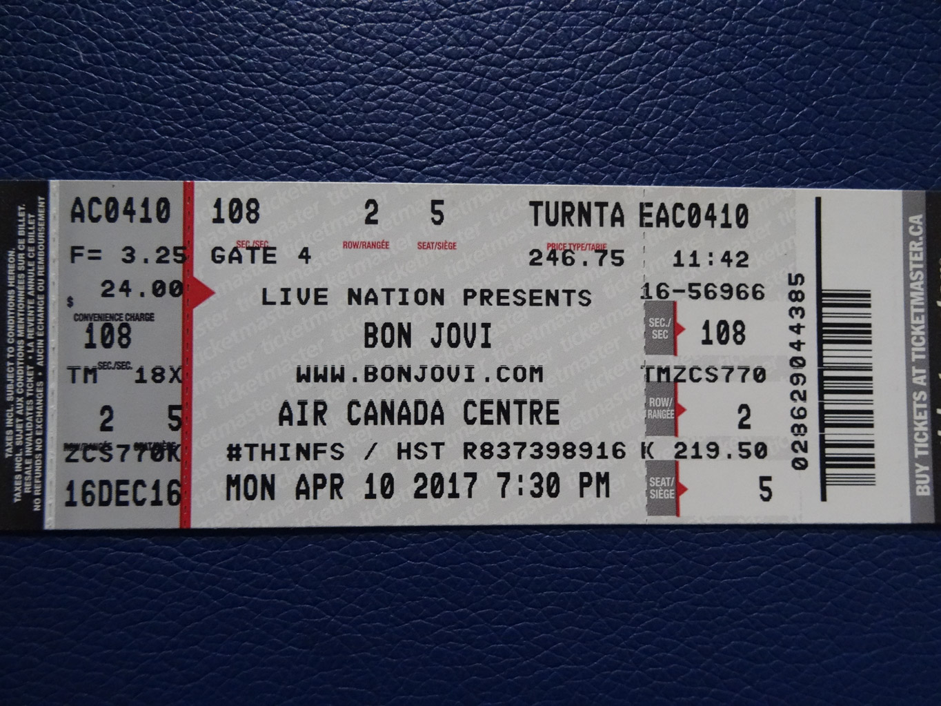 There was some concern about the concert happening because Bon Jovi postponed a couple of shows last week due to bronchitis. Jon started out strong but you could tell that his voice was tiring towards the end of the show. With the addition of John Shanks and Toronto’s own Phil X on guitar, it was a different show than with Richie Sambora. I will be curious how different the show will be tomorrow night. The concert started around 8:30pm and it ended at 10:55pm. One hour later, I was back at the hotel in my pajamas.