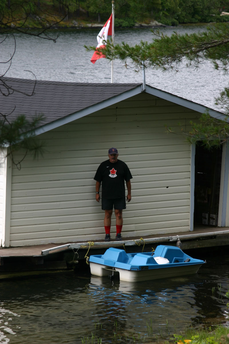 Karen was fortunate enough to receive an invitation from her brother Rob to join his family at their cottage in North Bay. We left Kitchener Saturday morning around 8:30am and decided to go the back way to Barrie. Unfortunately for us, we turned onto Highway 400 too soon and got caught in traffic. Once past Barrie, the drive was fine and we arrived at the cottage around 3:00pm. Also up on this weekend were Gloria, Deanna & Harley, Teresa, Ron & Caesar and Dave & Cathy. We spent the rest of Saturday eating (as usual), fishing and hanging around the cottage.