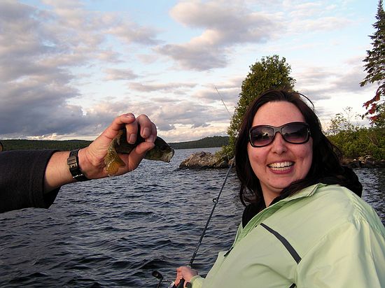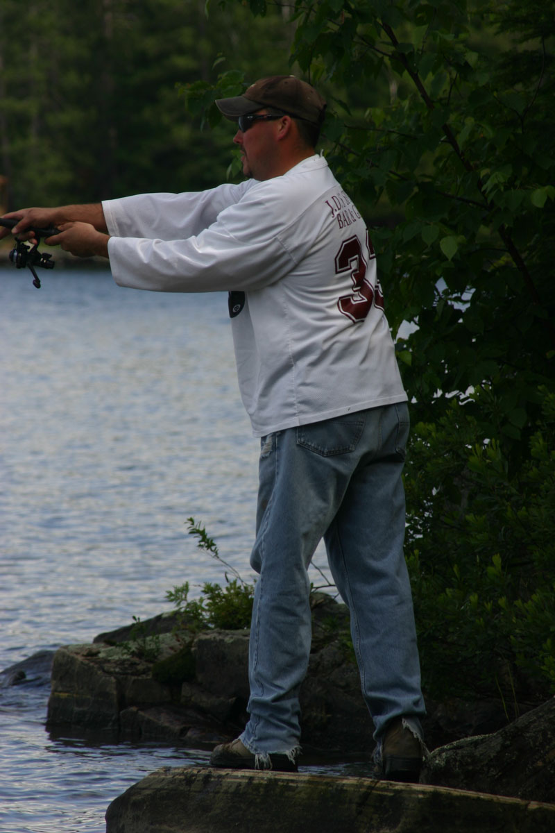 We started our Sunday by hanging out and then decided that we wanted to go fishing. The guys went out in the small boat and the girls went out in the big boat. We have determined that the fish enjoy the Ipod. Once we got back, we had more food and then had to say our goodbyes to Dave & Cathy. We tried our hand at fishing after dinner and everybody caught something except for Ron (aka Relic). We ended up have a late night around the campfire. There were lots of laughs and I hope that none of the video footage ends up on YouTube.