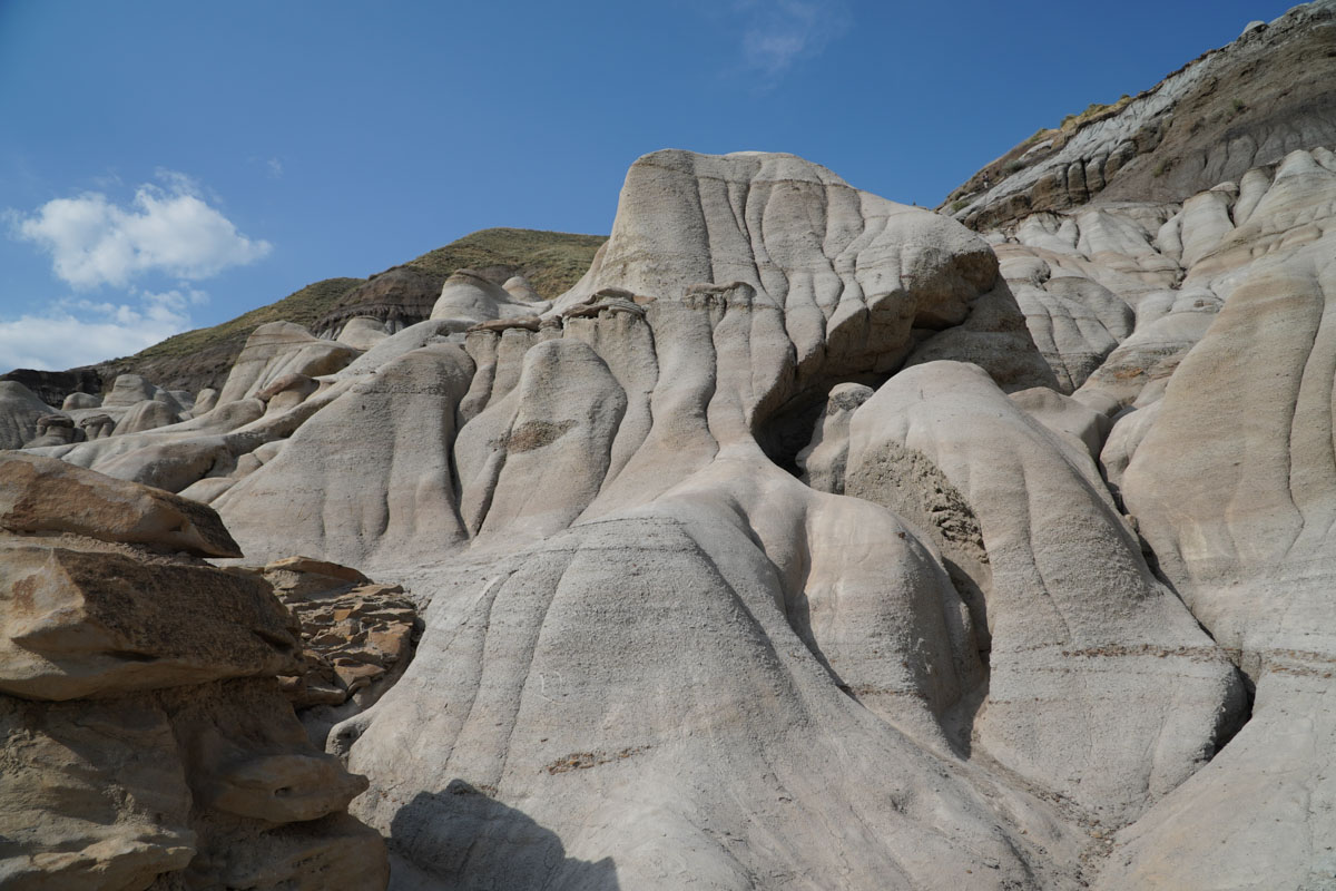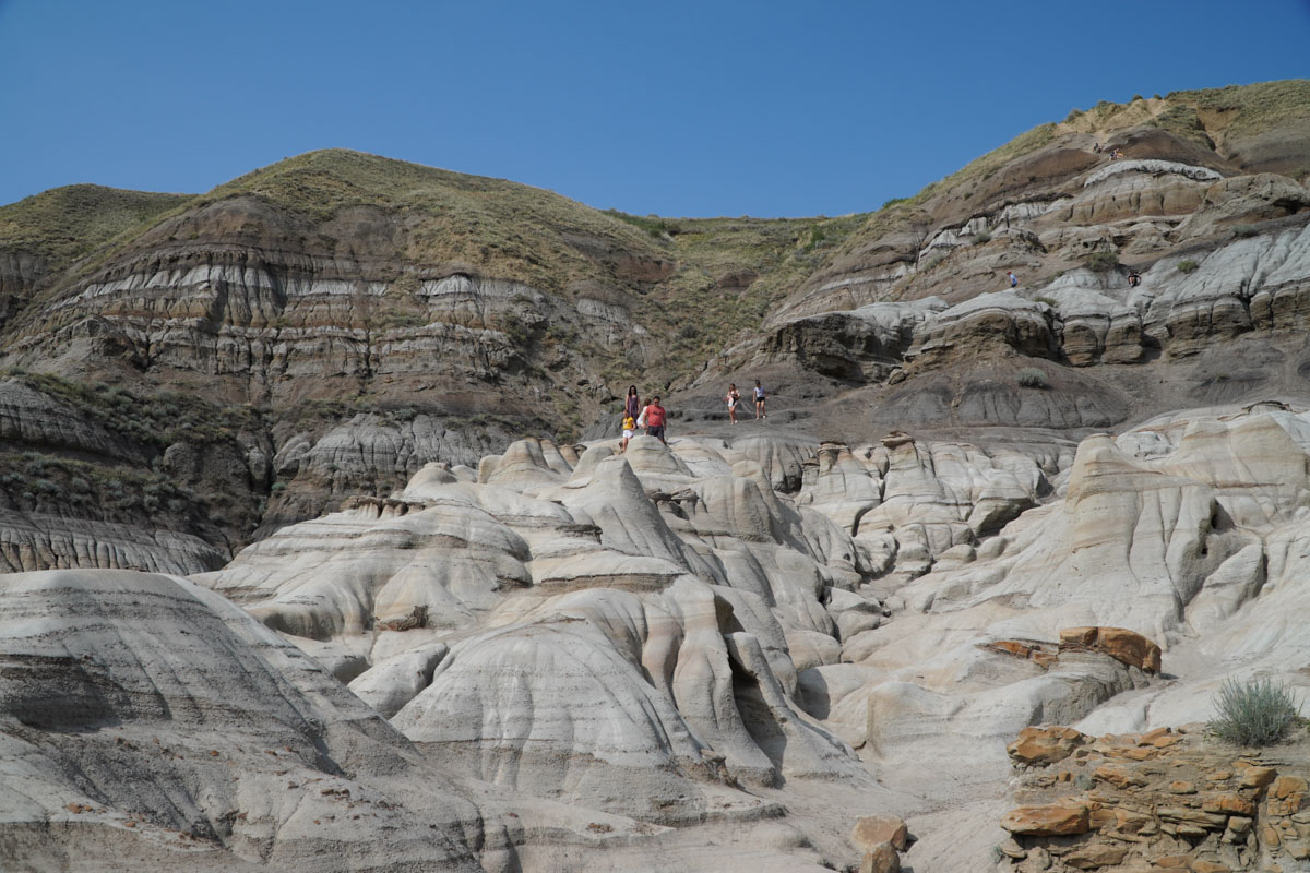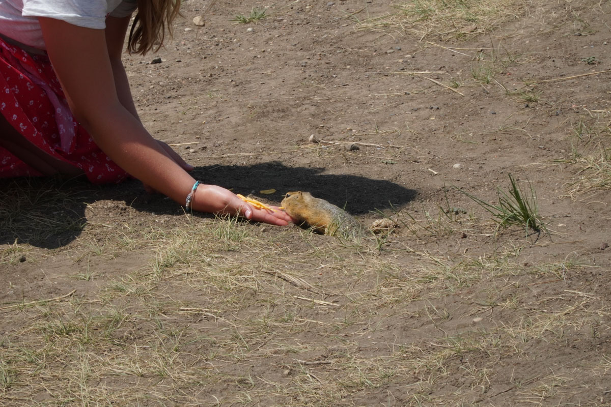 Our first stop was Horsethief Canyon which is sixteen kilometres northwest of Drumheller on the Dinosaur Trail. Before getting to the edge to get a look at the canyon, we encountered prairie dogs. There was a man with his two daughters feeding the prairie dogs Hickory Sticks. He told us that they are usually pretty tame but they can also turn on you and bite. The view of the canyon was awe inspiring. The canyon got it’s name after the outlaws that hid stolen livestock in the valley. I never knew there was this kind of scenery in Alberta.