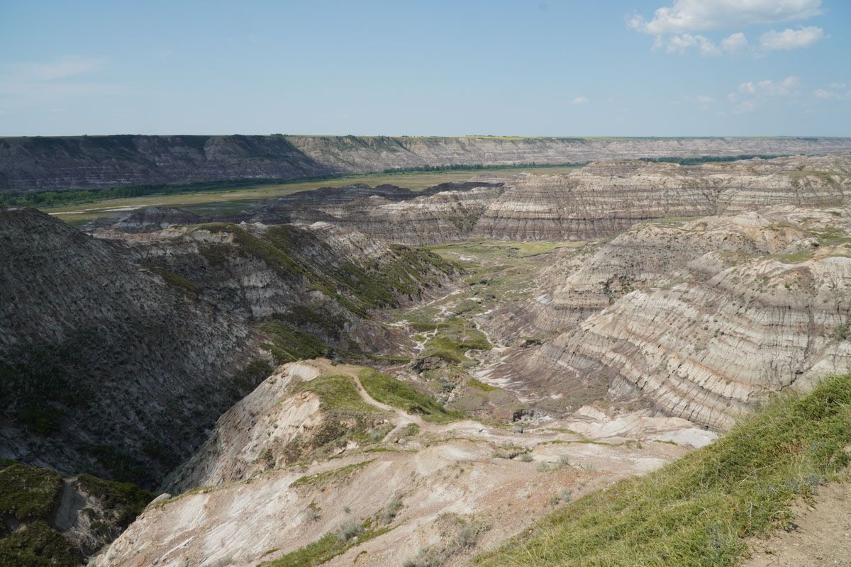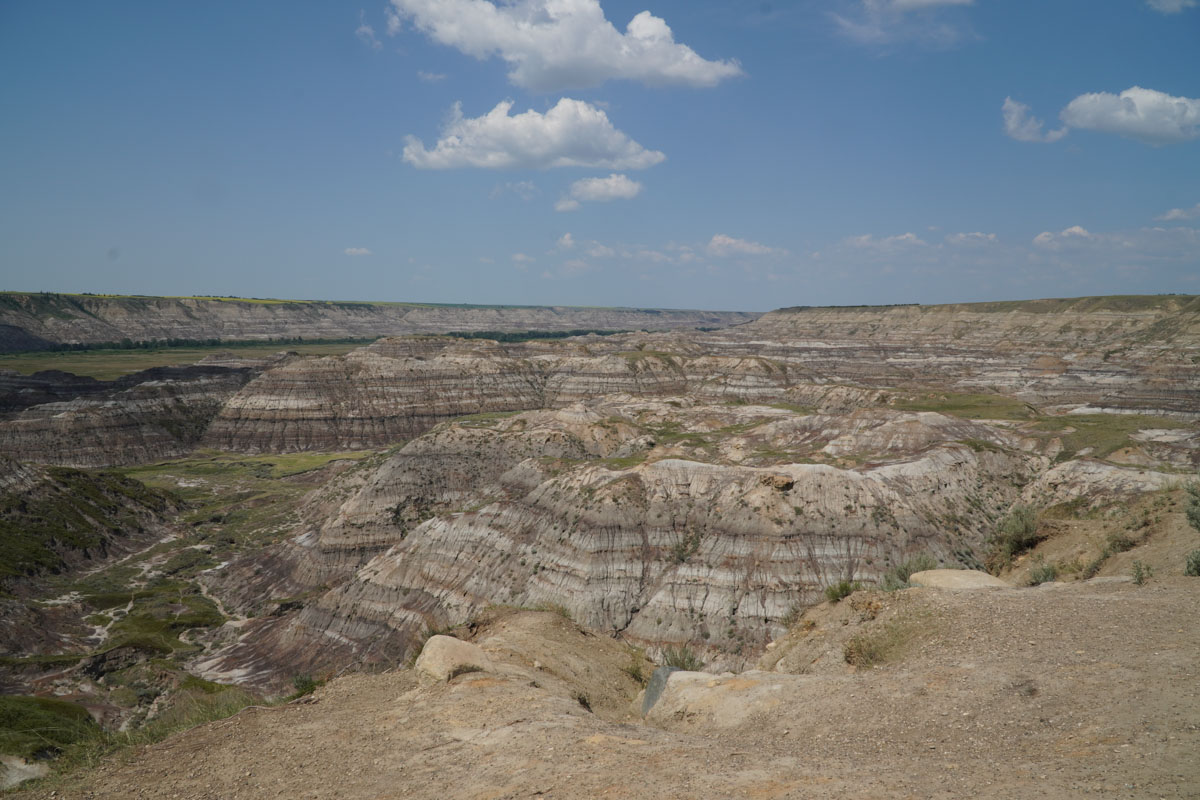 I woke up at 4:0am because my body thought it was 6:00am. Much too early to get up so it was back to sleep for a few more hours. I headed downstairs and got us some breakfast before we hit the road at around 9:30am. We are staying in Canmore but we thought to take a detour to the Canadian Badlands which is about one and a half hours east of Calgary. The Badlands was where the dinosaurs roamed millions of years ago.