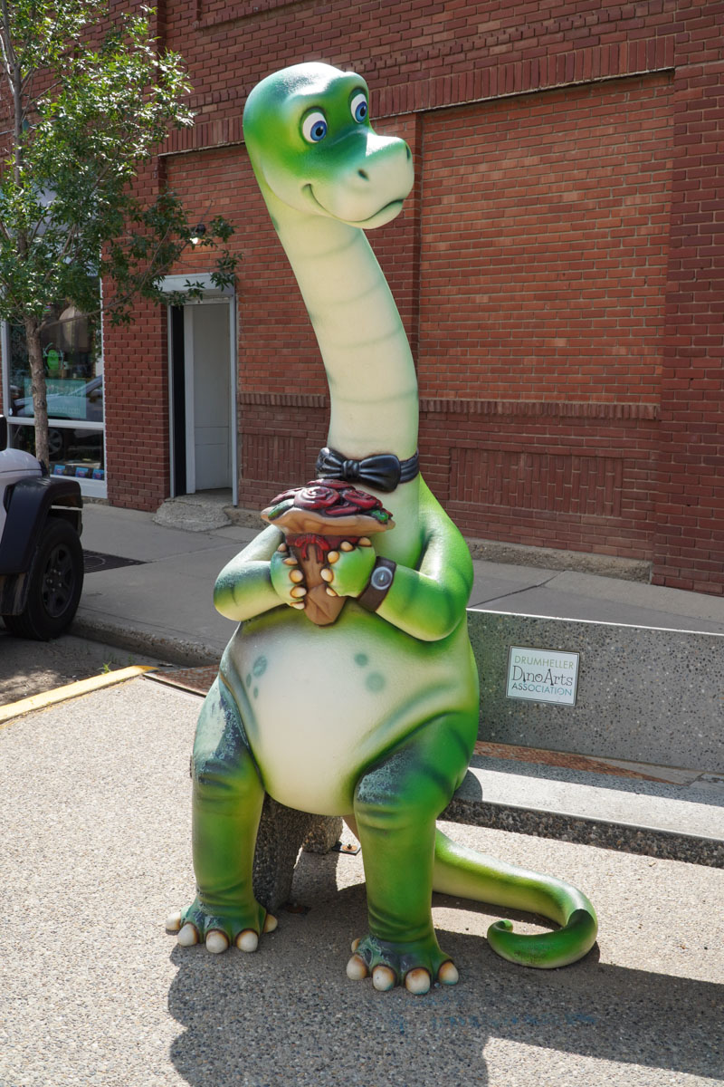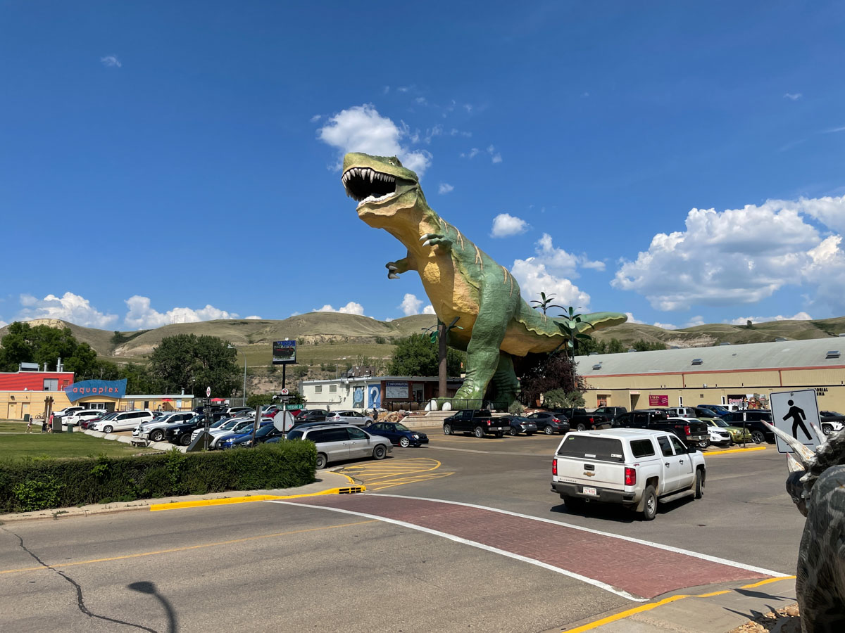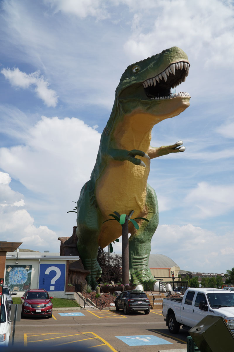 We left the canyon and got back on the Dinosaur Trail to the town of Drumheller. There are dinosaurs everywhere in town including the World’s Largest Dinosaur … a Tyrannosaurus Rex that stands eighty-six feet tall.
