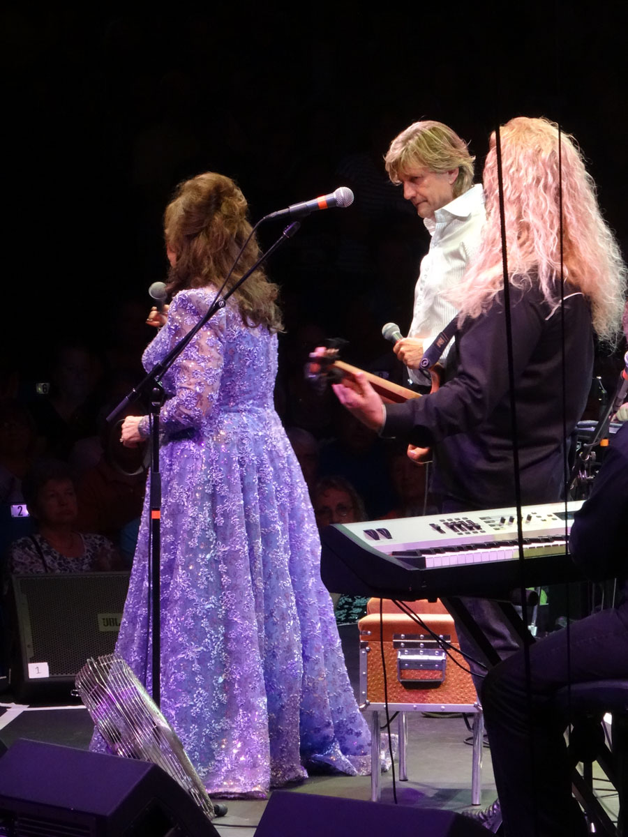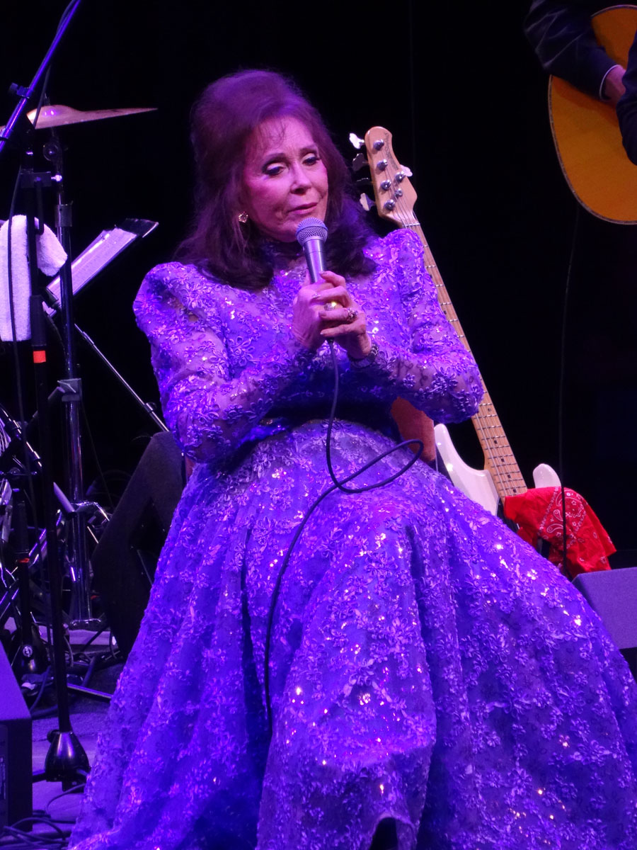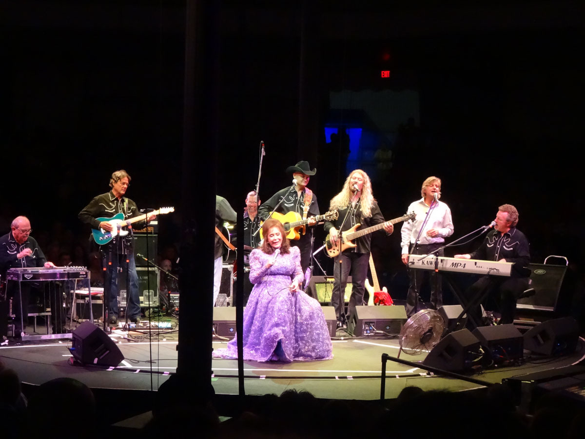 The concert started with Walker County, a sister duo who were accompanied by their dad on guitar. Next up was Loretta’s son Ernest Ray and then her twin daughters Patsy and Peggy. Finally the moment came, Loretta walked down one of the aisles and took the stage. She was dressed in one of her signature gowns. I don’t know how she did it since it was about a million degrees inside the tent. She spent most on the concert sitting down but that’s understandable for an 83 year old woman. Loretta sang all of her hits with no help from a teleprompter. What a lady. If you ever get a chance to see Loretta Lynn, make sure you do. There is a reason she is the first lady of country music.