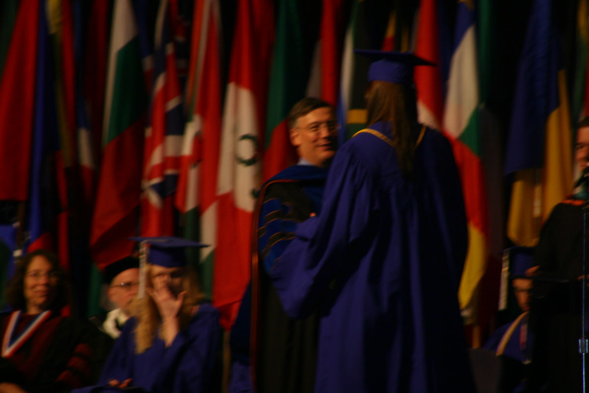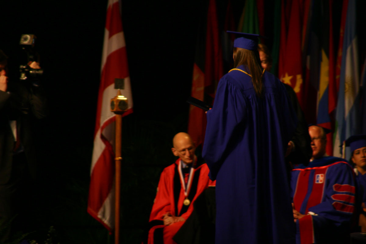 It was a beautiful ceremony that included a pipe band.  All of a sudden, in a blink of an eye, Liz  was on the stage accepting her diploma.  Liz graduated with a Bachelor of Science in Business Administration cum laude (which means a cumulative grade point average of 3.50 – 3.69).