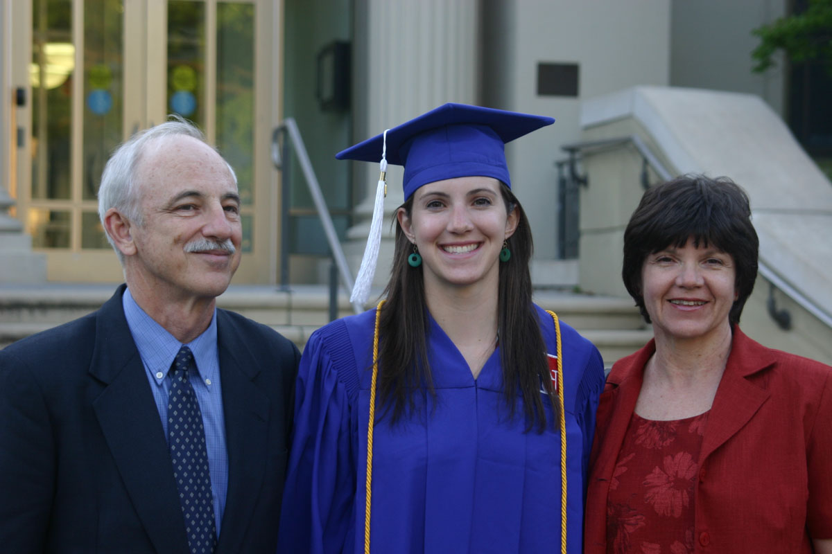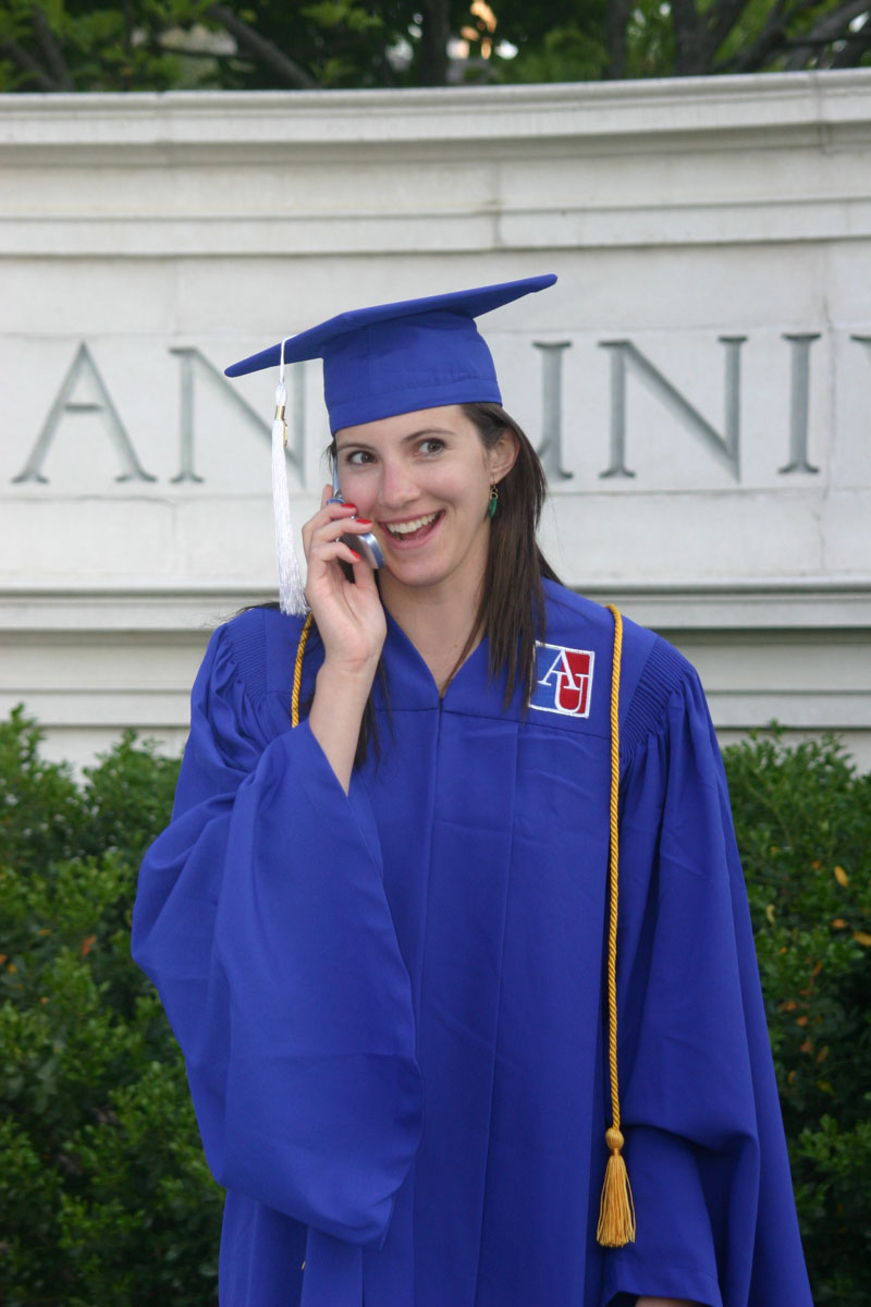 After the ceremony, there was a reception at the Woods-Brown Amphitheater.  While walking to the cars, we stopped to take many pictures of Liz around the campus.