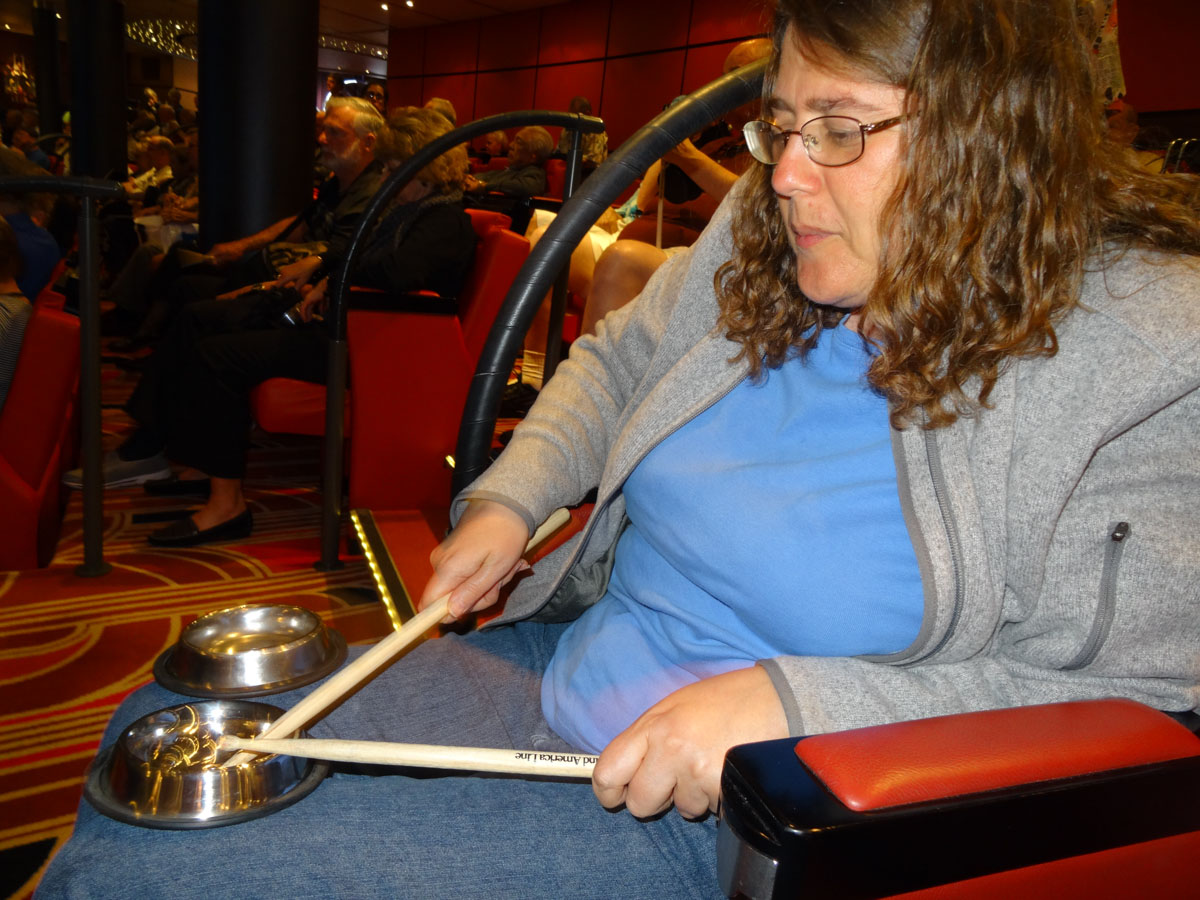 Tonight’s show in the Showroom At Sea was Recycled Percussion. When we first entered the showroom, each person was given a drumstick and something to bang … stock pot, dog bowl, frying pan, etc. it is hard to explain the show but basically there are four guys that are using recycled materials to entertain. There was a guitarist, two drummers and a DJ. They were on America’s Got Talent and because of that now have a show in Las Vegas. If you ever get a chance to see them, make sure you do. It is a high energy interactive show.