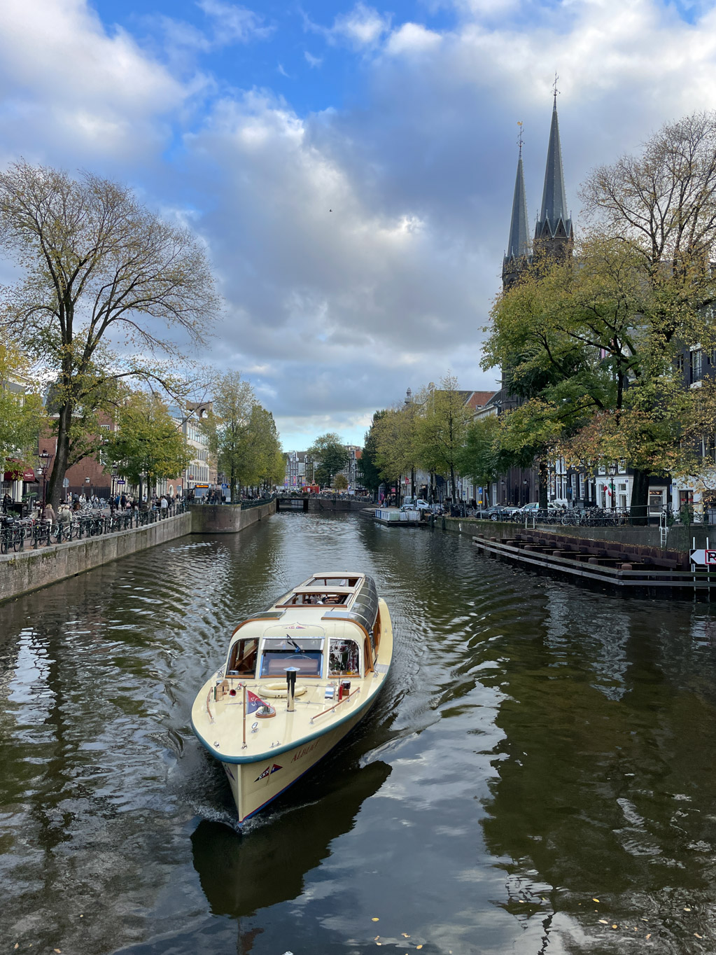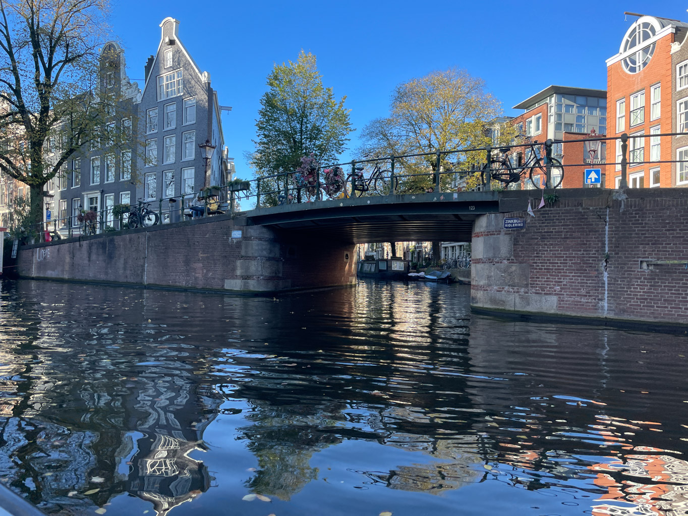 The tour lasted about one and a half hours and was a fantastic way to see the city. As we were winding through the various canals, Herman made sure to give us so much information about life in Amsterdam. For example how bikes outnumber cars. He told us that he personally has two bikes … a weekday bike that you leave outside and a much nicer weekend bike that is locked inside the house. He also explained that houses were built so narrow because they were taxed by the width of the property.