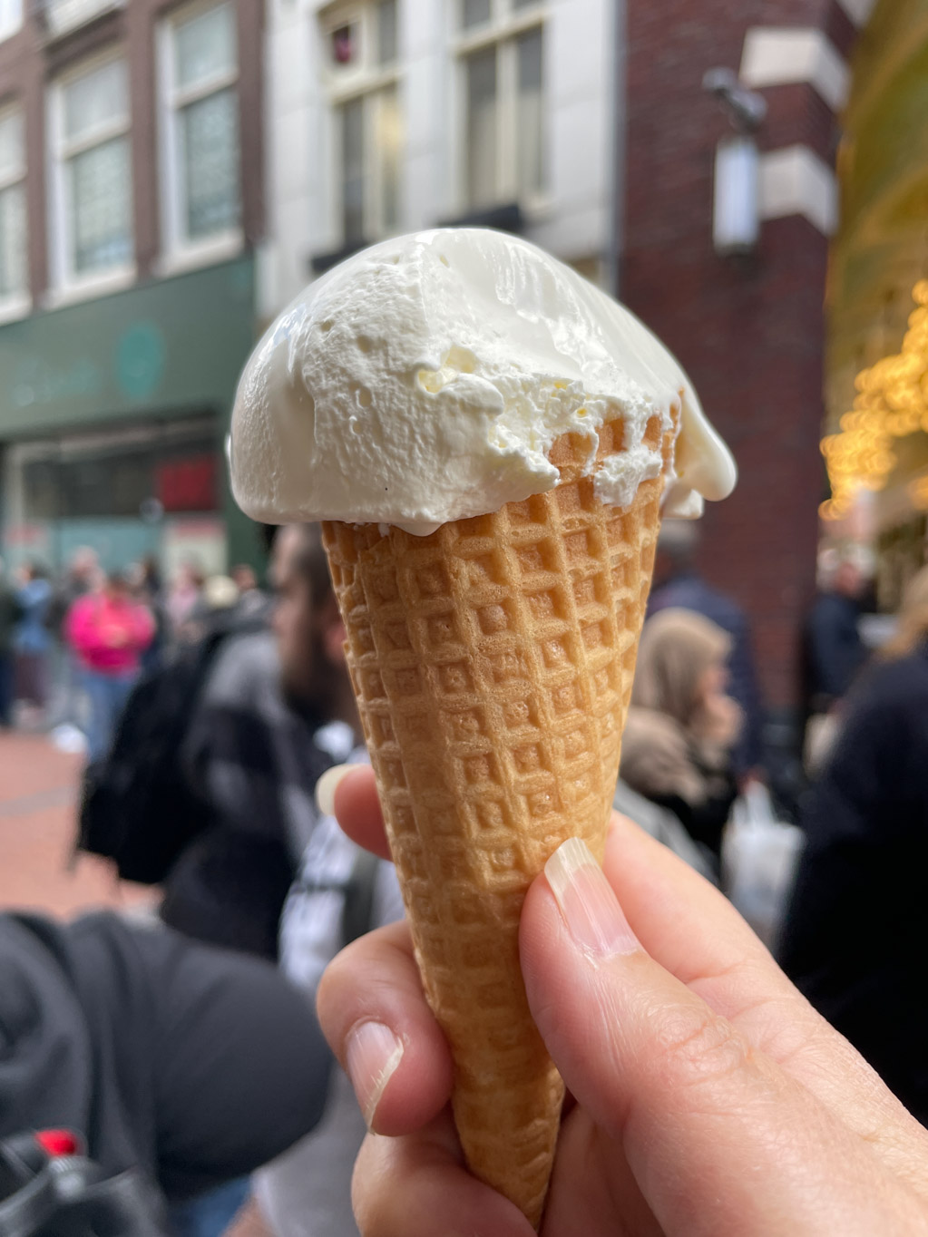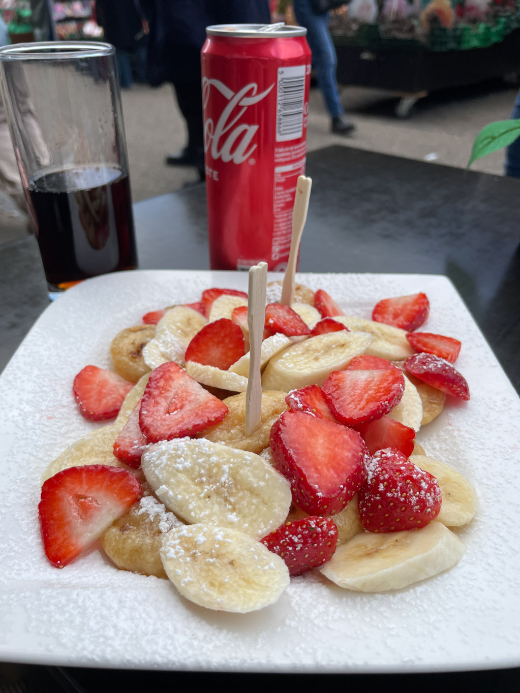 My friend Marcel (who is Dutch) said we had to try Poffertjes while in Amsterdam. They are like tiny pancakes. Across from the flower market, there was a restaurant serving them so we decided to give them a try. I am glad we decided to take Marcel’s advice because we thoroughly enjoyed our strawberry and banana topped Poffertjes.