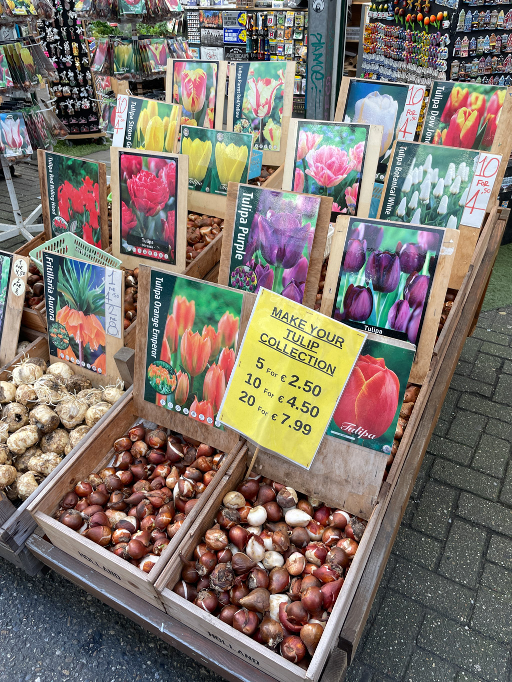 What flower is most synonymous with the Netherlands, tulips of course. Lucky for us, Amsterdam has a large flower market. There were many stalls selling many varieties of flowers. We quickly learned that we had to look for the flowers that had a health certificate since they would be the only ones allowed into Canada. At least this narrowed down our scope. After spending some time going through all of the stalls, we each walked away with some bulbs that will be enjoyed in the spring.