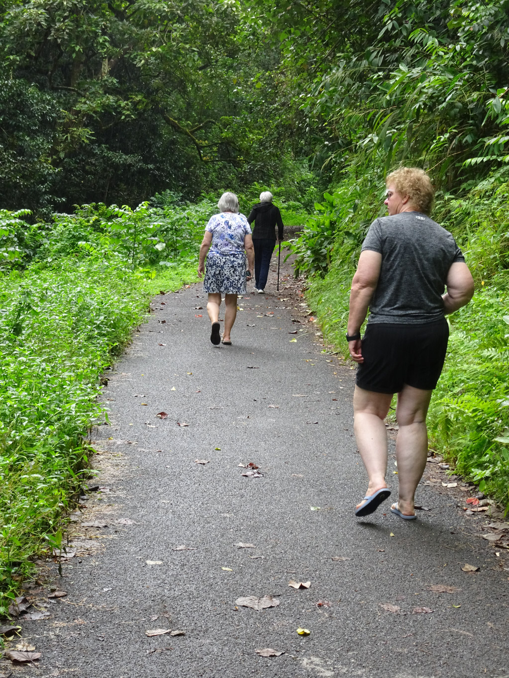 We made a few planned stops along the way, including Kaumahina State Wayside Park and the Ke’anae Arboretum. The arboretum was a favorite for everyone. The paved walking path made it easy to explore, and we loved seeing the variety of tropical plants, including the colorful Rainbow Eucalyptus and numerous types of palm trees.