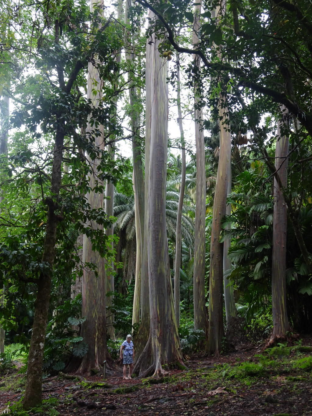Nana amongst the Rainbow Eucalyptus trees