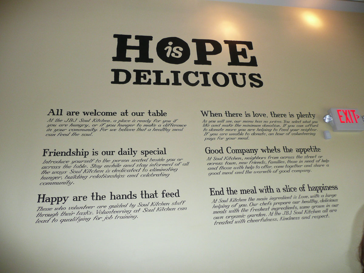 It was a really late night so our bodies decided that we needed to sleep in. We wanted to do some “stalking” today for Jon Bon Jovi. Actually we wanted to visit his restaurant which is called the JBJ Soul Kitchen in Red Bank, New Jersey. It is part of the Jon Bon Jovi Soul Foundation whose motto is “Rebuilding pride in one’s self and one’s community – one SOUL at a time”. Here is an explanation of the concept of the restaurant from their website … “JBJ Soul Kitchen is a community restaurant with no prices on the menu; customers donate to pay for their meal. If you are unable to donate you may do volunteer work in exchange for your family’s meal.”