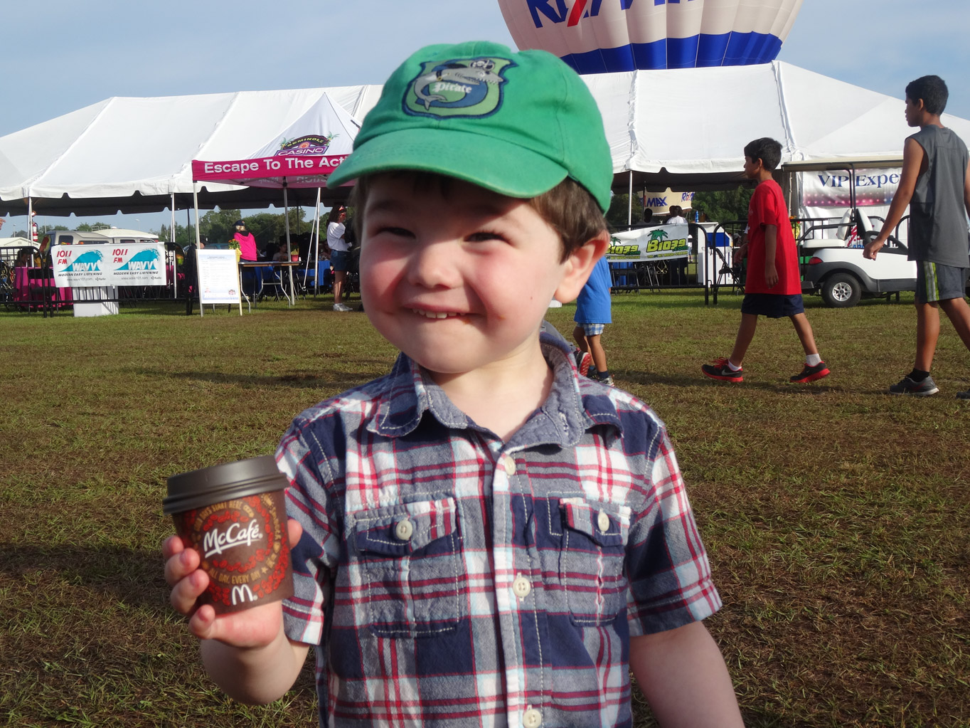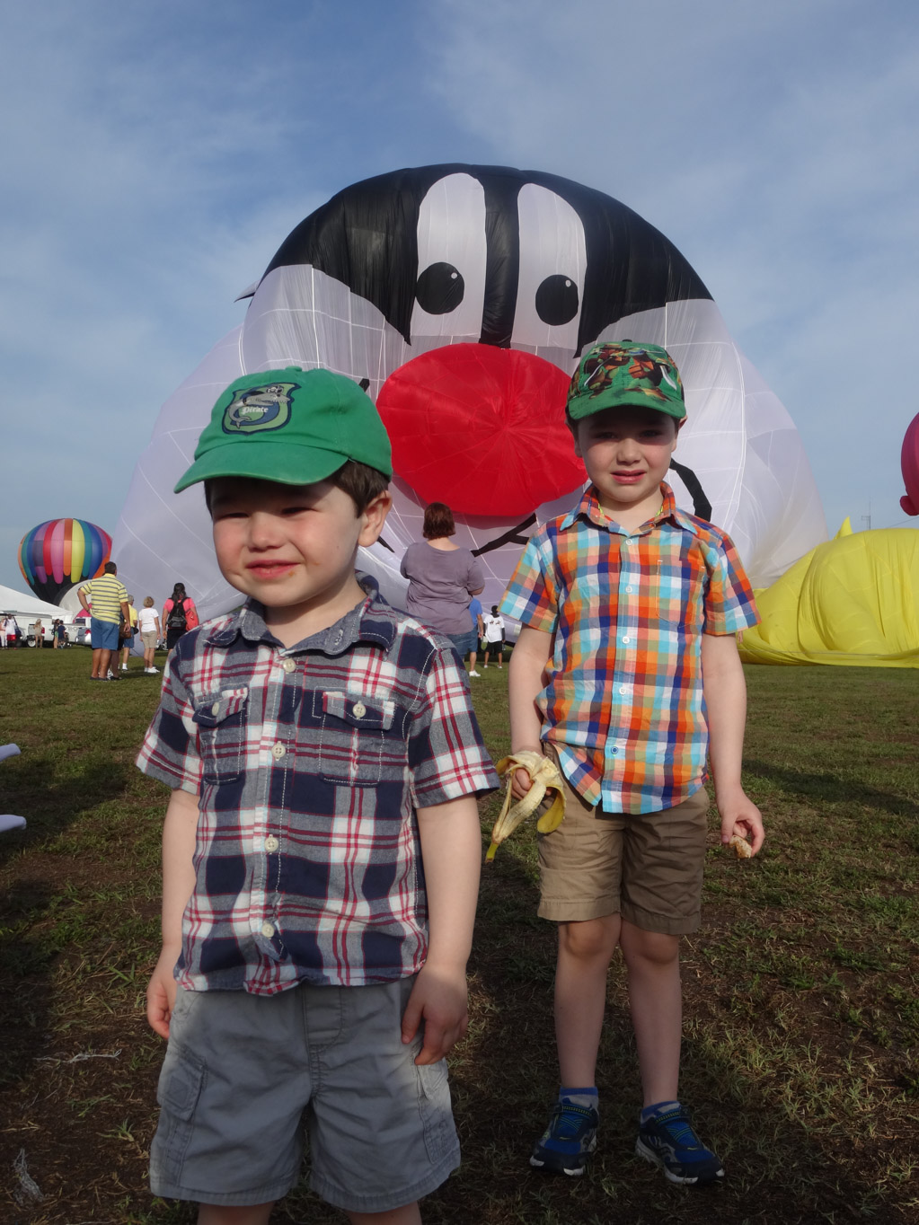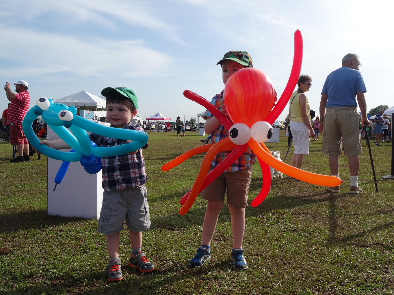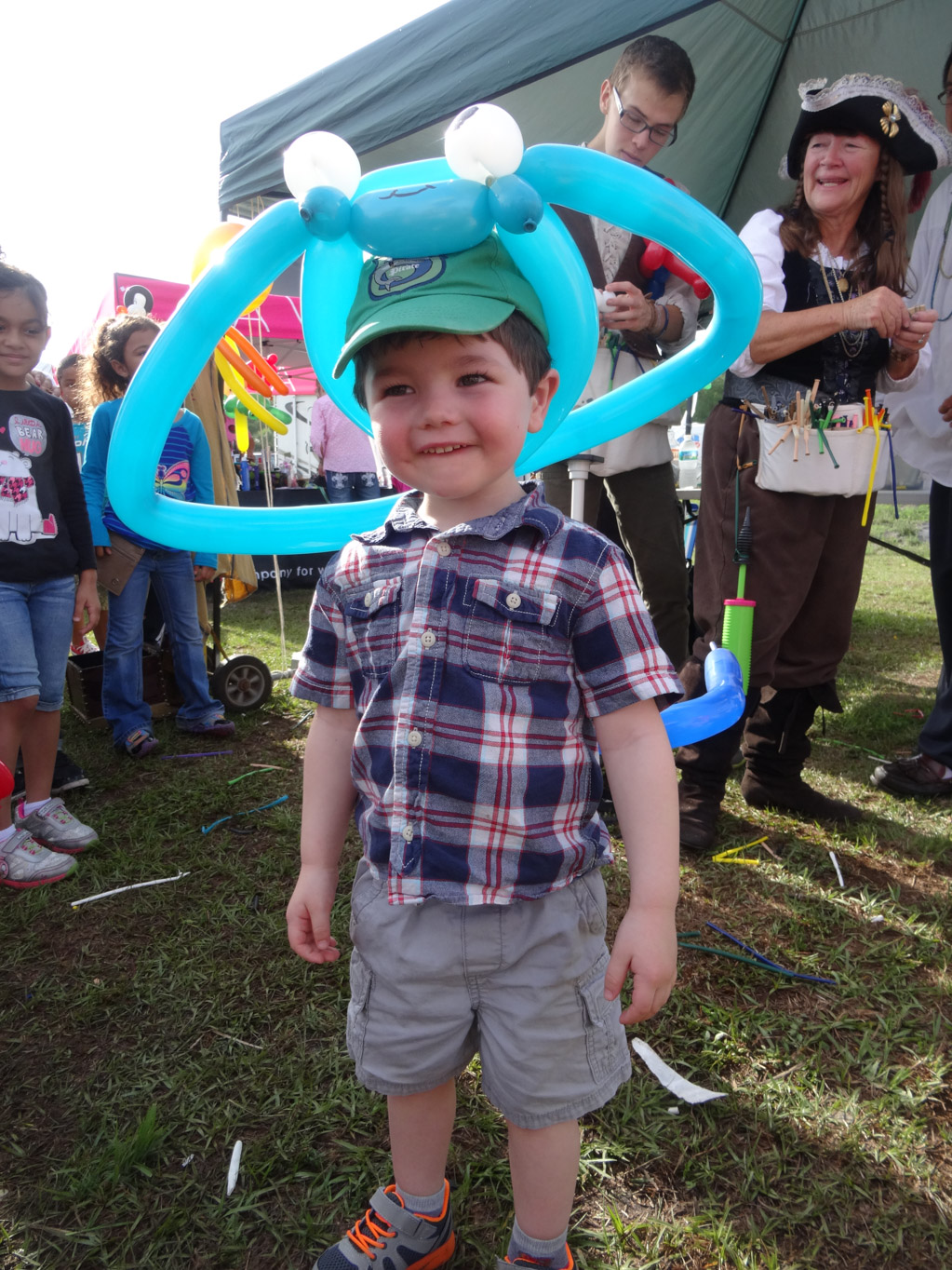 We did not get to the park in time for the Pre-Dawn Glo but we did still manage to see Puddy Cat and Yellow Bird, Chuckles the Clown and Hamlet the Flying Pig. after looking at the balloons, we checked out the various vendors. The best one was Ballon Buccaneers which made these awesome ballon animals. Michael got this huge octopus while Liam got a stingray.
