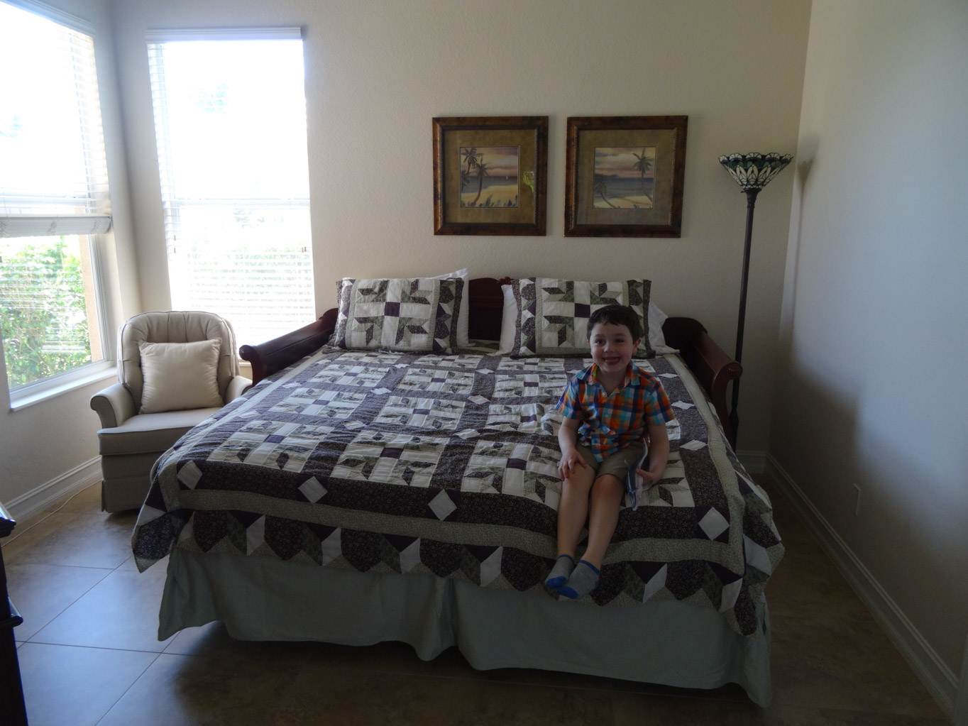 Since we were close to the marina, we thought we should go and check it out. Just past the marina is Ann Olesky Park. It’s an area that has some picnic tables, boat launch area and a long wooden pier with a covered structure at the end of it. As we were walking along and watching various people fish, Karen spots an alligator coming towards us. As he got closer to the pier, he dropped under the water and then appeared again on the other side. It was really great for the boys to see an alligator in the wild. On our way back to the rental house, we stopped and picked up lunch from Panera Bread.