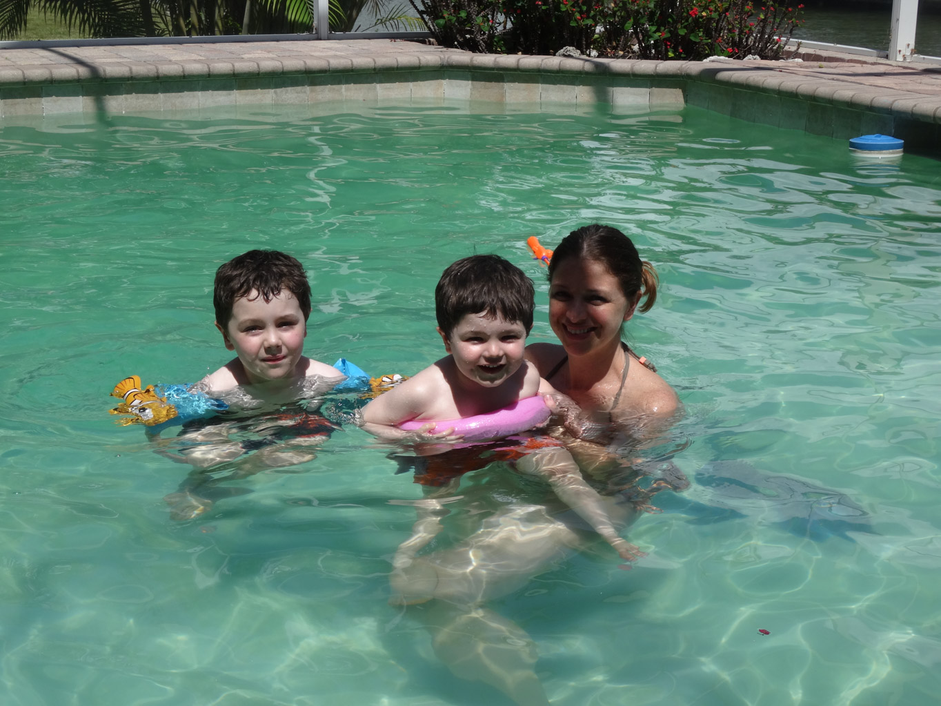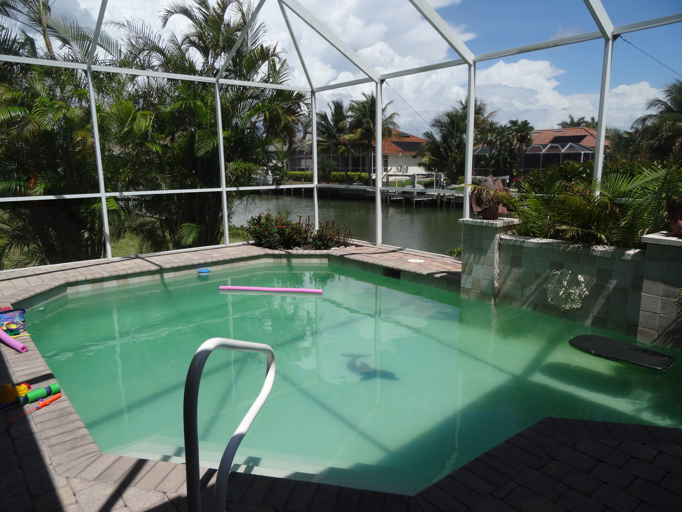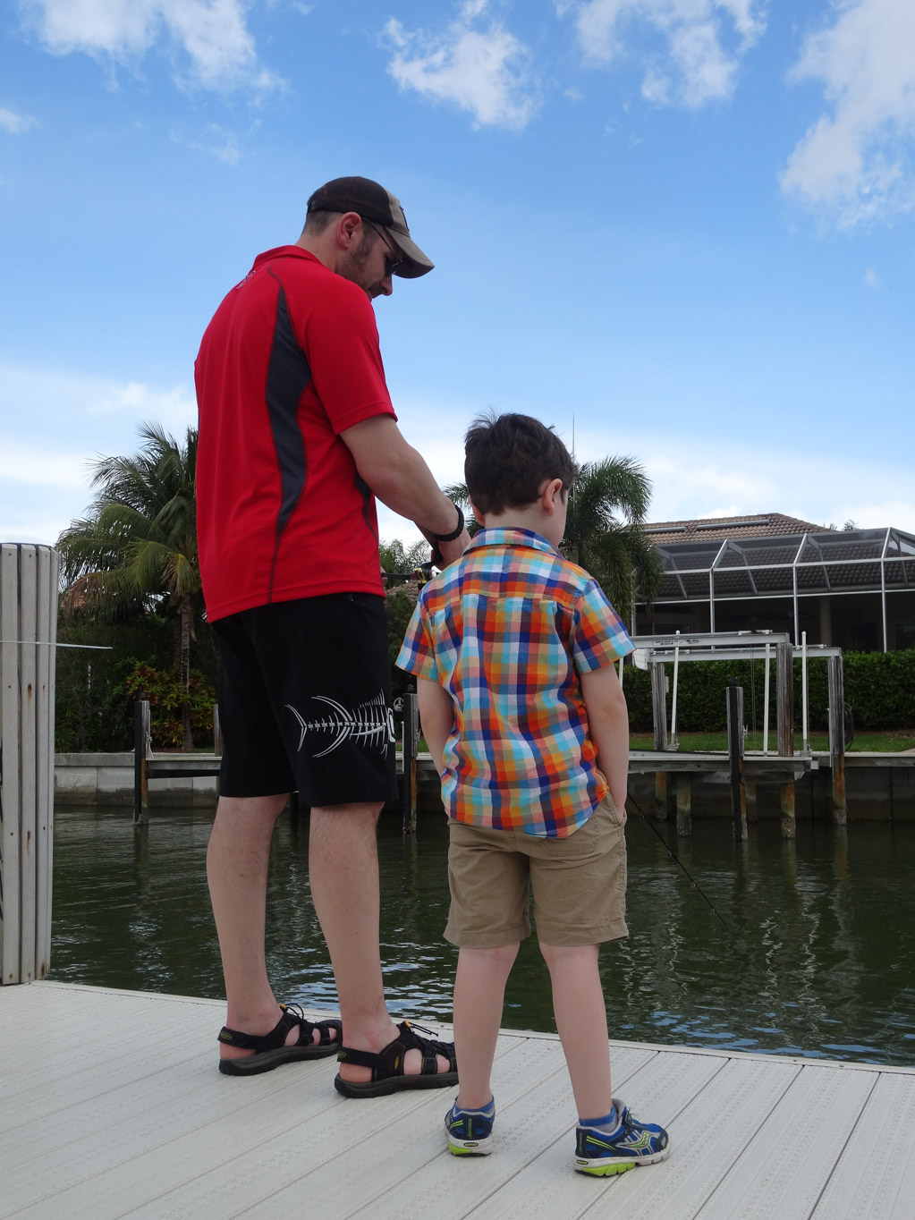 We were all tired from getting up early so we spent the rest of the afternoon swimming and relaxing. We left Dave, Cathy and the boys dockside fishing while Karen and I went to Cracker Barrel to pick up dinner. When we got back, they were very excited to tell us that they caught nine fish. After dinner, we had a quick swim before watching movies.
