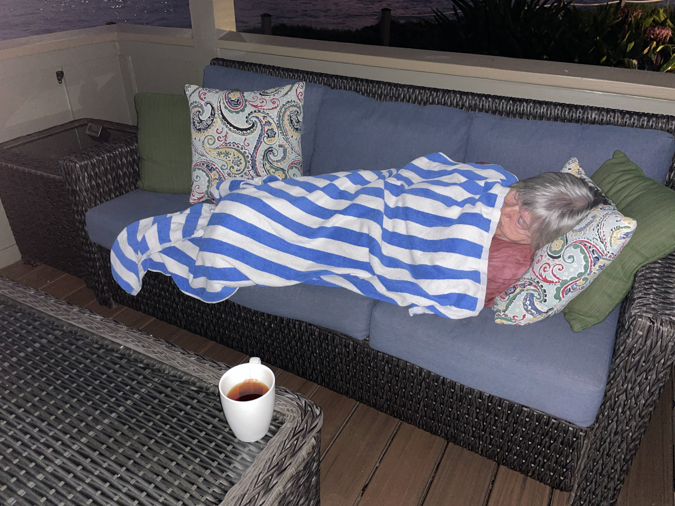 We returned to the harbor just before 7:00 p.m. and about forty-five minutes later we were back at the condo. The evening wrapped up with the “turtle patrol” crew—Nana, Darlene, and Karen—checking out the beach, followed by a relaxing episode of Landman.