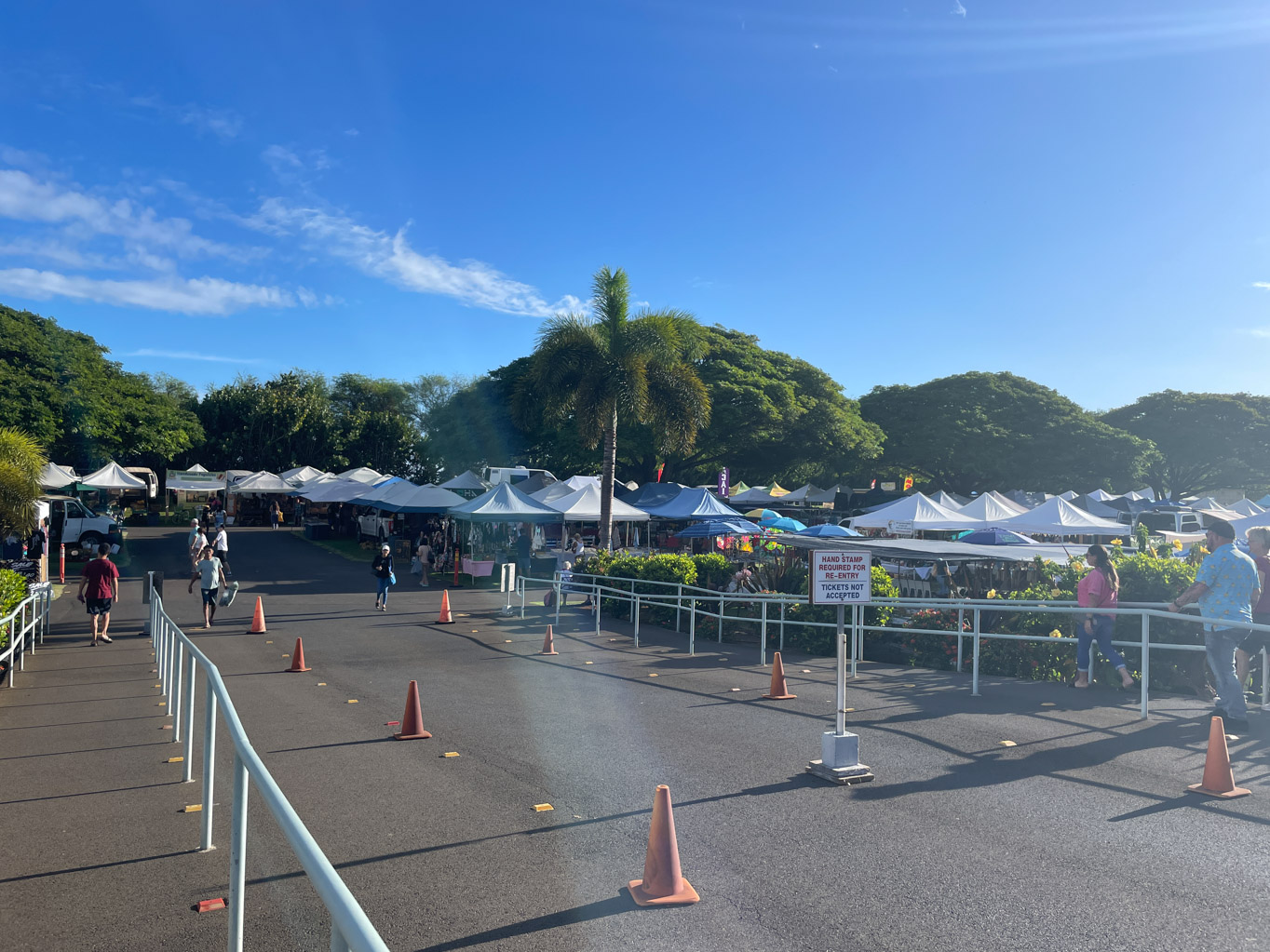 Since the early 1980s, the rear parking lot of the University of Hawaii Maui College has hosted the Maui Swap Meet every Saturday. A blend of farmers market and craft fair, it runs from 7:00 a.m. to 1:00 p.m. and admission is just one dollar. Visiting the Swap Meet has become a tradition for us whenever we’re on Maui and today was no exception.