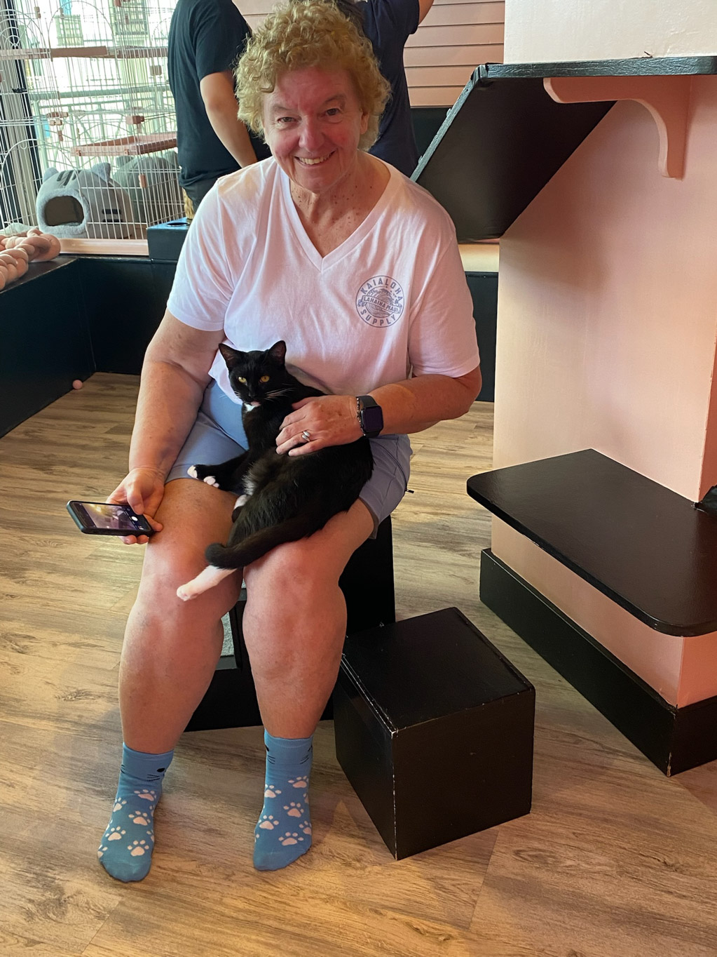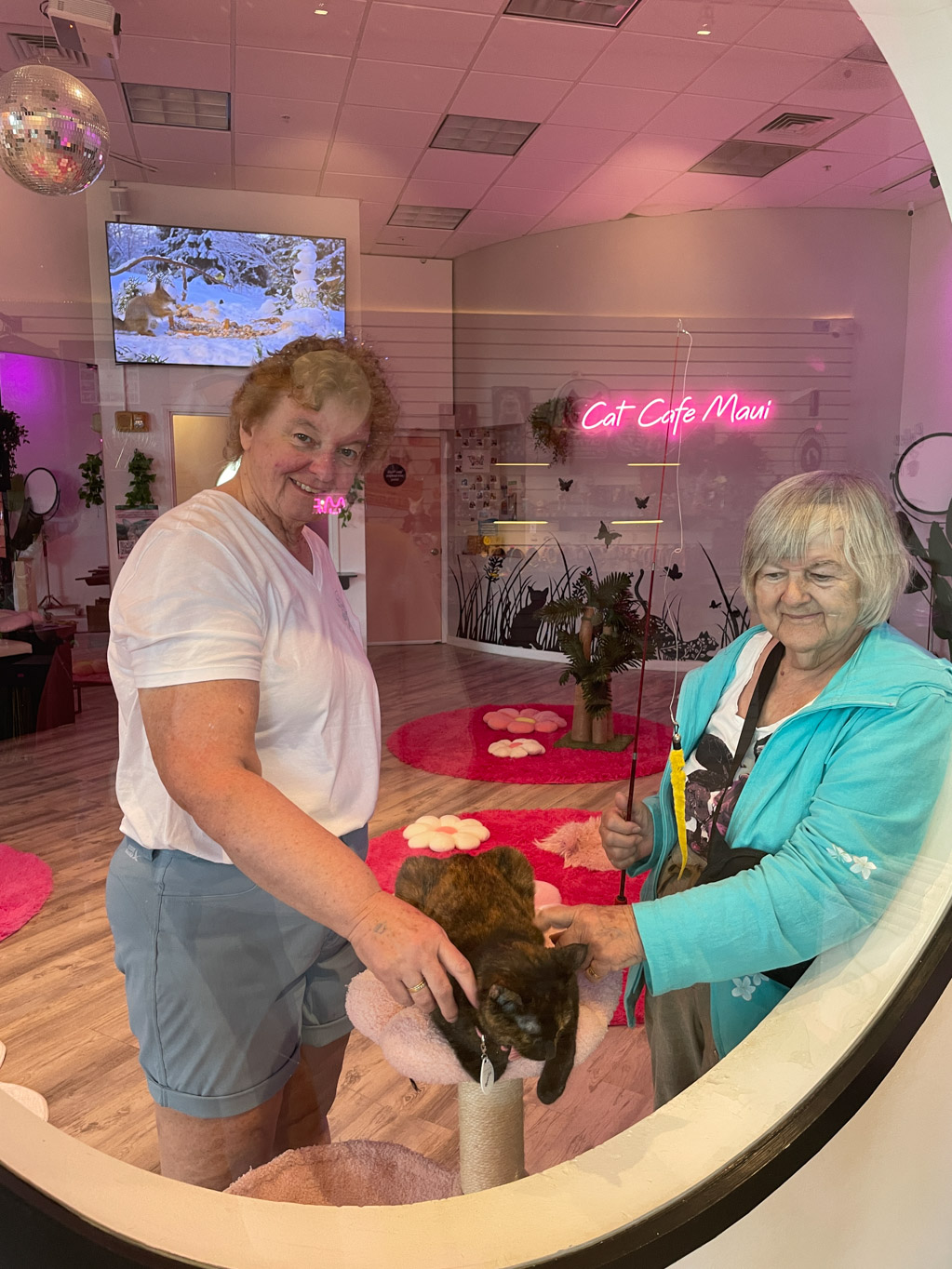 The mall is also home to Cat Café Maui, a cozy and calming space where guests can interact with friendly, adoptable cats. While Karen, Darlene, and Nana enjoyed some quality time with the kitties, Joan and I did a bit of shopping at Macy’s, followed by lunch at L&L Barbecue. Afterward, we headed back to the condo for some much-needed rest.