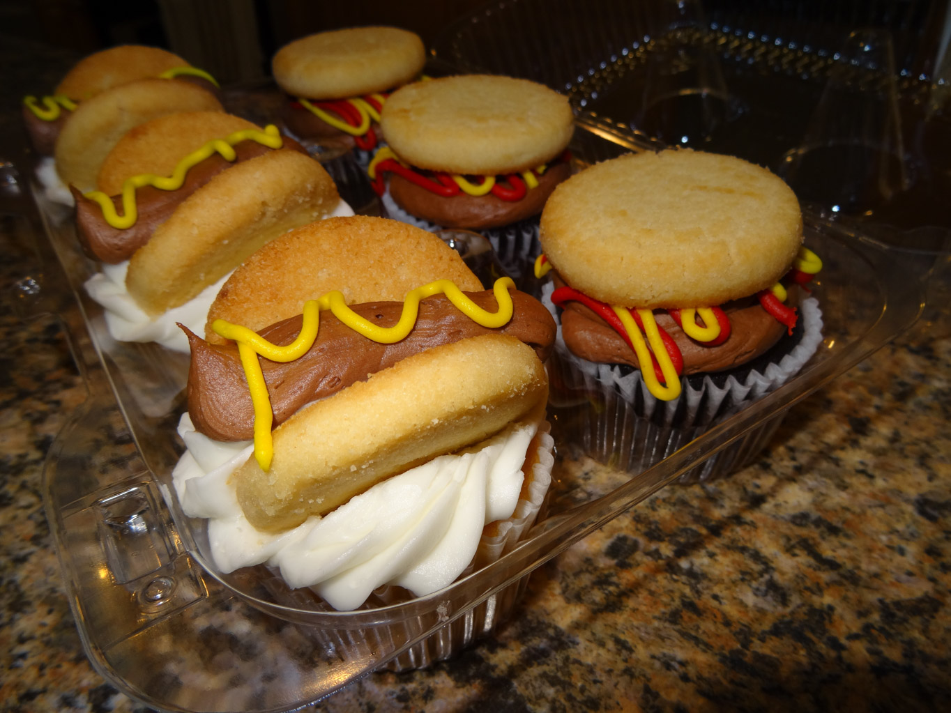 We ended our night with take out from Olive Garden and hot dog/hamburger cupcakes.