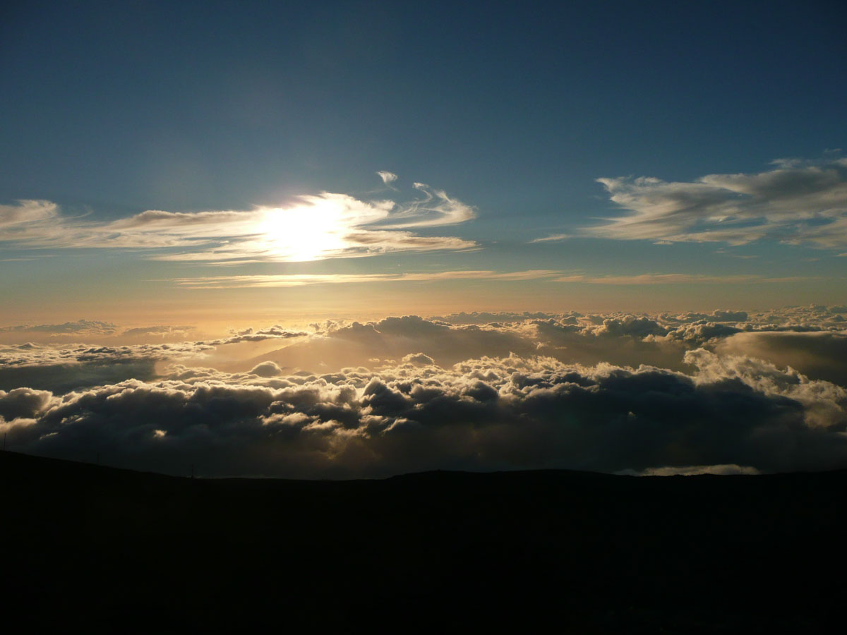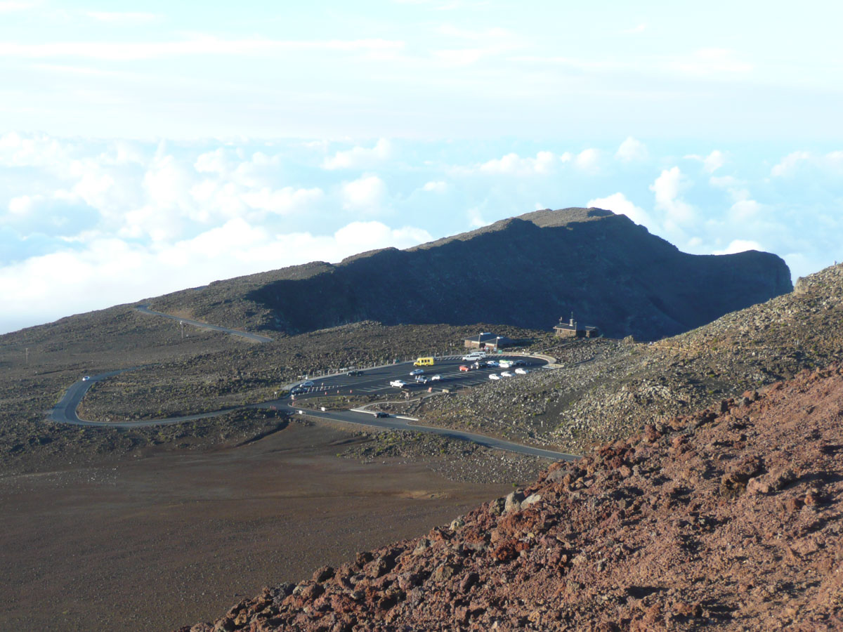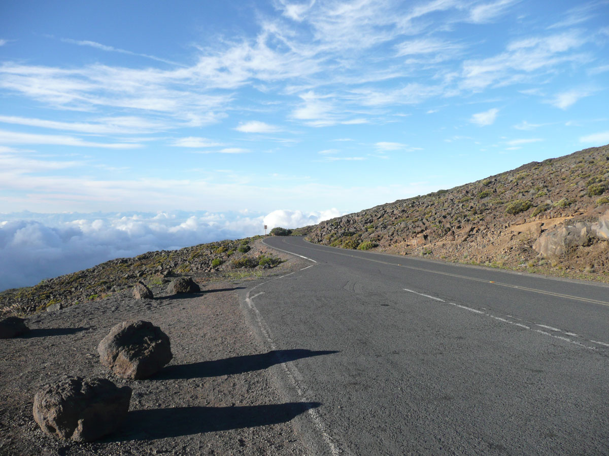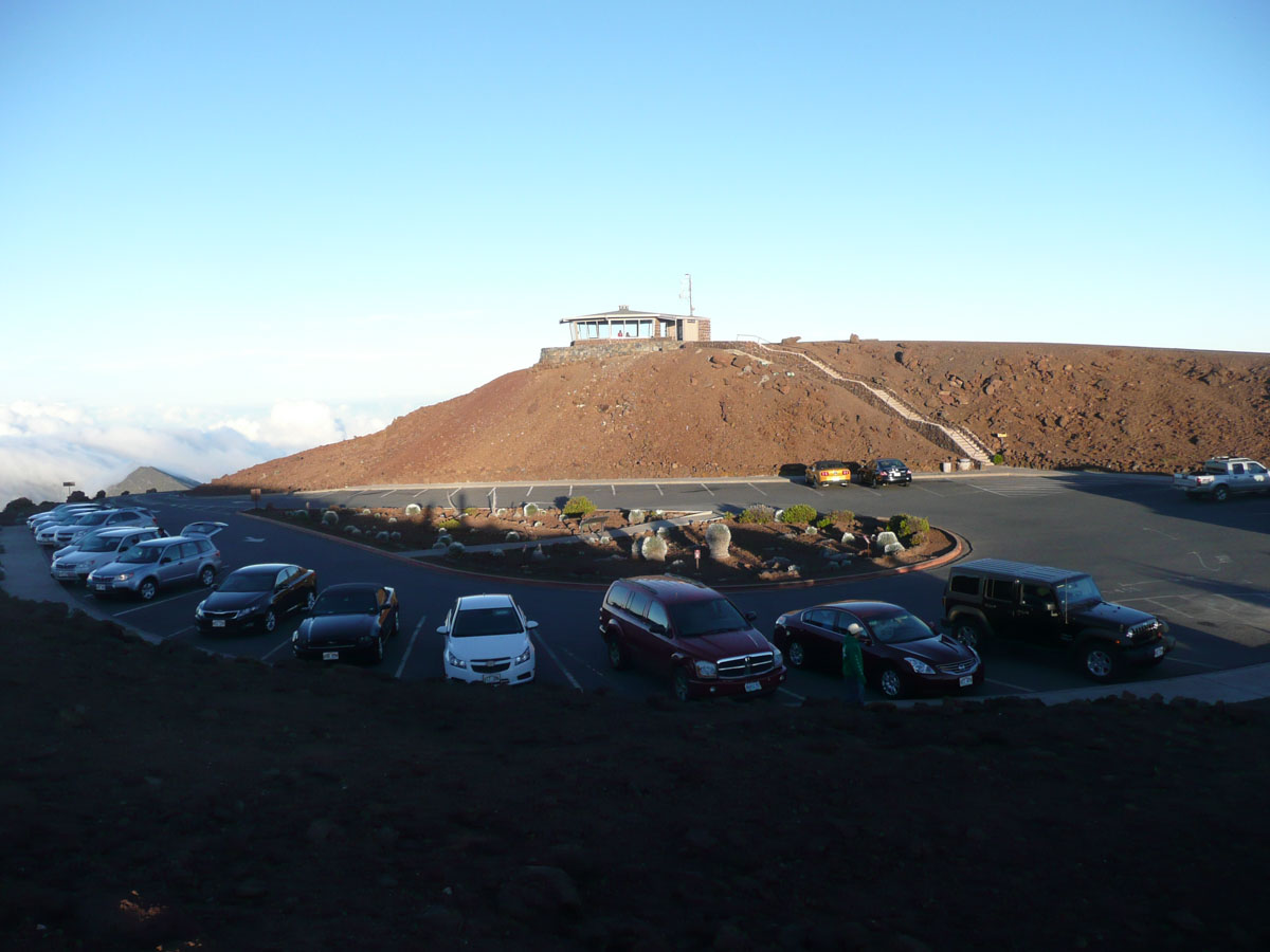 Most people go to Halelaka National Park to experience sunrise at the top of the dormant volcano. We wanted to do something different so we decided to head up there for sunset. The drive which takes about one and a half hours can get very dangerous at times. There are many switchbacks and at some points, there is nothing between you and falling down the side of the volcano. We started the trip at the bottom with a temperature in the mid 80’s and as we drove through the clouds, we reached the summit where the temperature was now 55°F. We quickly got our warm clothes on and started up to the viewing area.