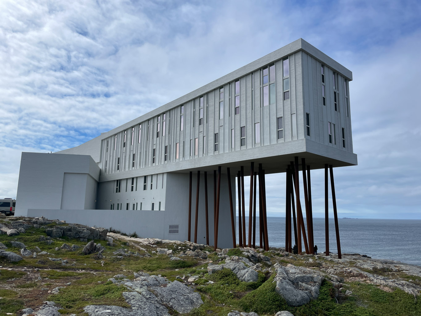 Fogo Island Inn is a luxury twenty-nine room hotel in Joe Batt’s Arm. And by luxury I mean that rooms start at over $2000 CAD / night and upwards of $6000 CAD / night. Guests have included Oprah Winfrey, Gwyneth Paltrow, David Letterman and The Obamas. The hotel is part of Shorefast which is a Canadian charity whose mission is to help build economic and cultural resilience on Fogo Island. The vision of the inn and charity was created by Zita Cobb who was born on Fogo Island. She wanted to showcase and preserve the hospitality, art and culture of Fogo Island. So when I learned that they offer free tours, I made sure to sign us up.