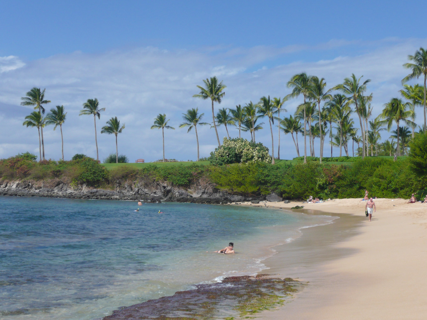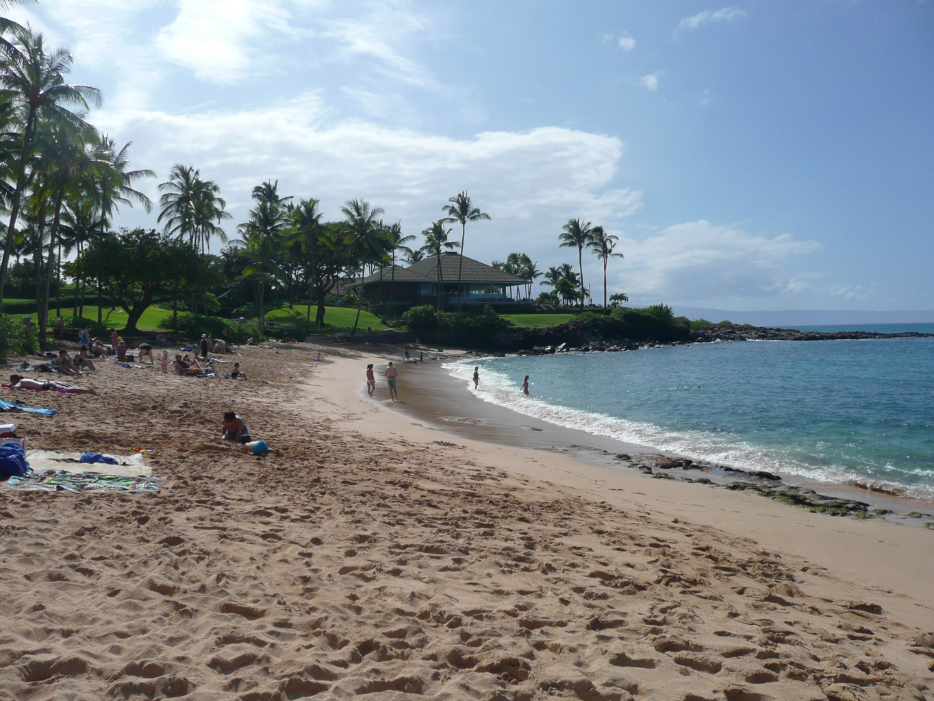 Kapalua Beach is beautiful.  It’s crescent shaped, surrounded by palm trees, and has a clear view of Molokai.  We spent the next few hours enjoying the ocean, eating, reading and napping, and even some swimming.  A typical day at the beach.  I could get used to this.