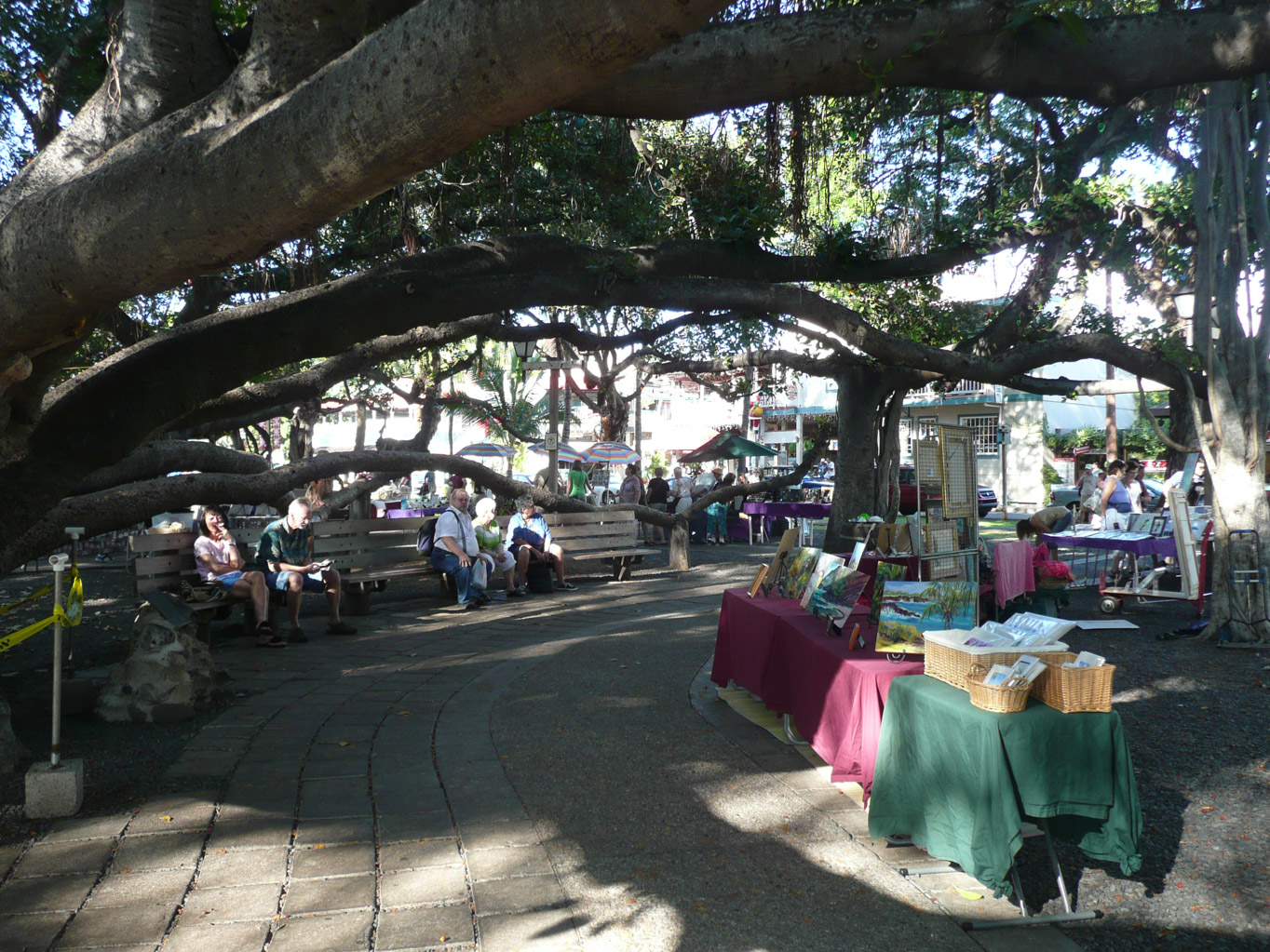 We went back to the condo to change and headed south to Lahaina to check out the craft fair under the Banyan Tree.  There were lots of nice local crafts, including glass fusion jewelry and photography of Maui.
