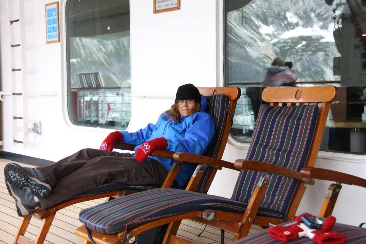 It was a very early day today. By early, I mean we were down by the indoor pool having breakfast at 6:00am. We needed to get there that early because we were cruising into Glacier Bay National Park and we wanted a front row seat. Once we were done breakfast, we spent the next three hours cruising through the park. Park rangers boarded the ship and throughout the day they are describing what we are seeing and giving us a history over the ship’s intercom system. By this time, Papa was getting tired so he and Nana went back to the room. Karen and I started roaming around the ship checking out the scenery from different vantage points.