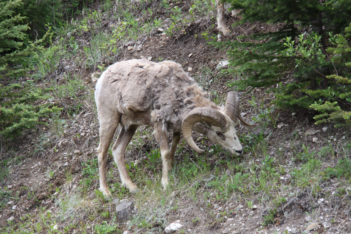 We got back on solid ground and headed back to Banff. Before actually getting into the town, we did the Lake Minnewanka scenic drive. We saw more big horn sheep and what we thought was a cougar turned out to be a fox upon viewing the photos.