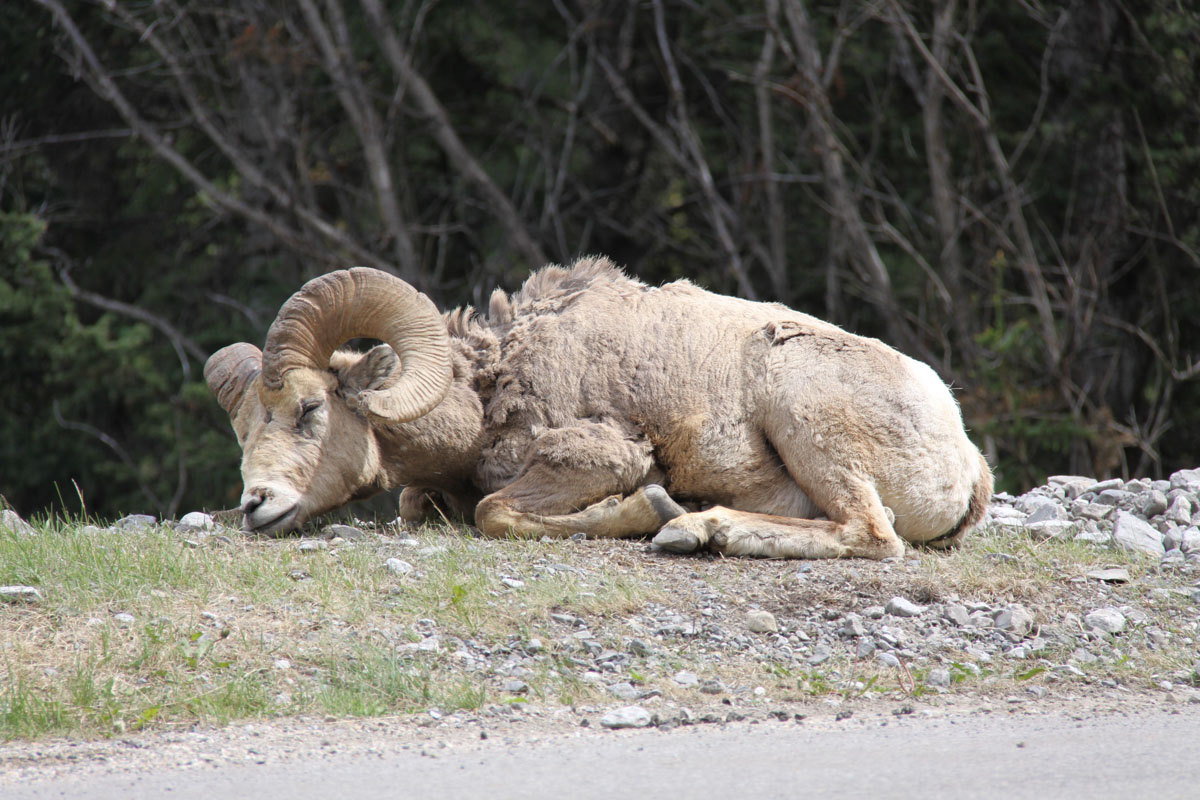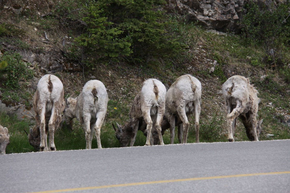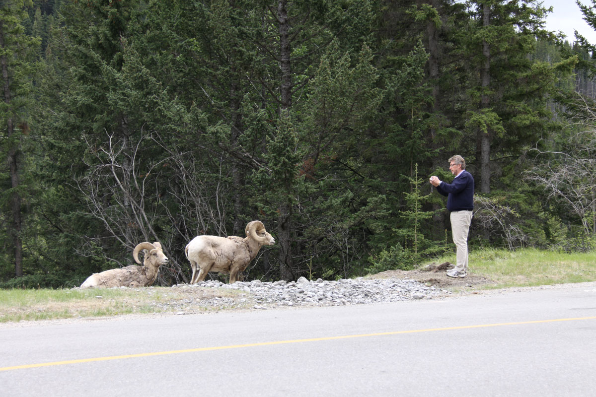 The weather today started out like most of the days on this trip, raining. But that did not stop the wildlife from appearing. On our way to Banff, we saw two black bears. We stopped in Lake Louise to pick up lunch before getting on the Bow Valley Parkway. Once again, it took us a couple of hours but this time we saw big horn sheep on the side of the road. We stopped about half way to enjoy our lunch in the car.