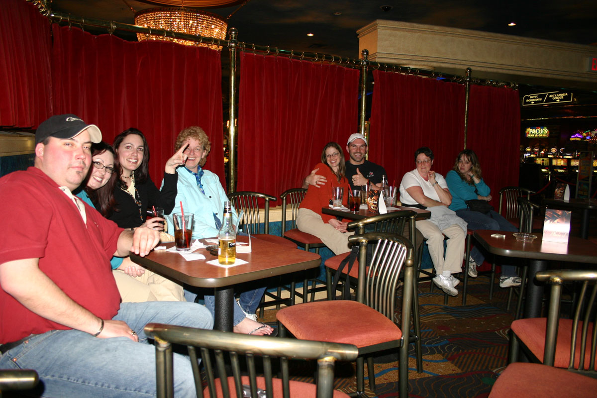 Some of Karen’s family was also in Las Vegas at the same time, so we decided that we would meet up for dinner and catch The Checkmates.  We met Marie and Teresa (Karen’s nieces), Ron (Teresa’s boyfriend), David (Karen’s nephew), Cathy (David’s girlfriend), Sylvia (Cathy’s sister) and Cathy’s mom at the Peppermill.  Two words describe the food at this place – large portions.