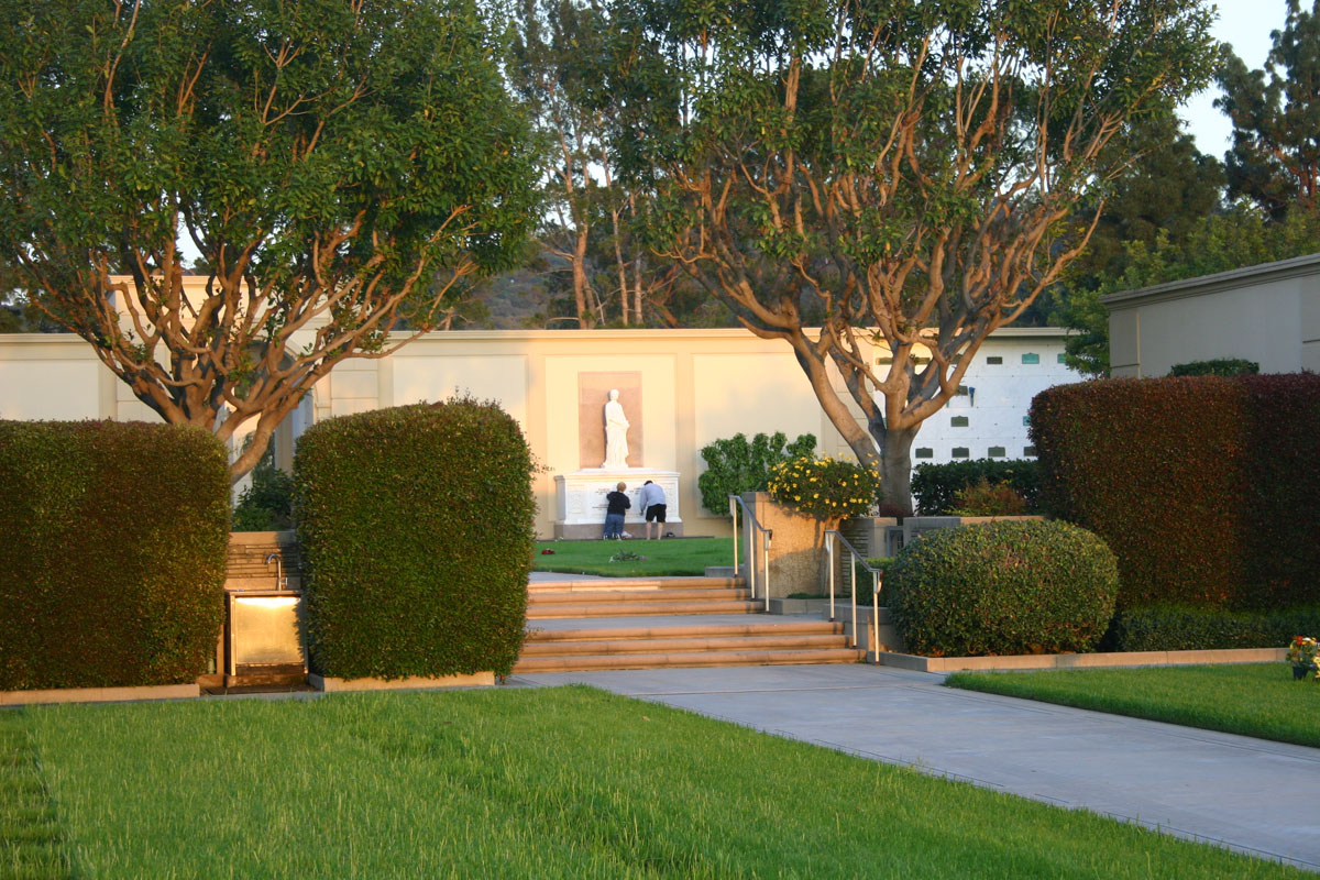 We left Universal Studios and made our way over to the Forest Lawn Hollywood Hills cemetery.  We were on a mission to see as many famous graves as we could before dark.  We saw the graves of Liberace, Freddie Prinze, Lou Rawls and many more.  We couldn’t find Lucille Ball, Andy Gibb or John Ritter.  Unfortunately we didn’t know that there was a website (http://www.seeing-stars.com/) that will tell you exactly where the graves are.  We will know better for next time.